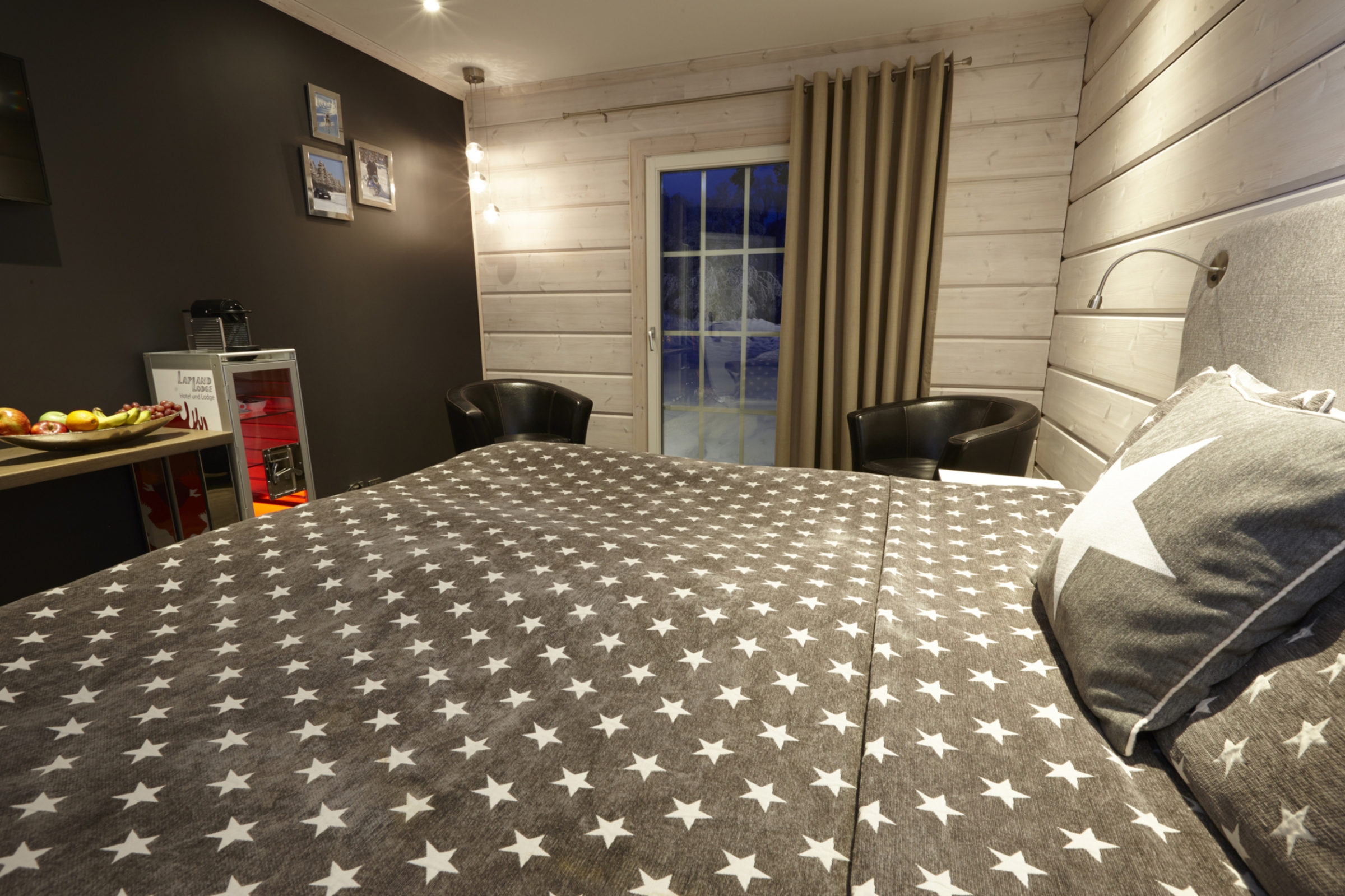 Die Lapland Lodge bietet Ihnen ein gemütliches und komfortables Zuhause mit familiärem Ambiente in Lappland. Sie verfügt über 19 liebevoll und individuell gestaltete sowie komfortabel ausgestattete Zimmer. Die 7 Classic Doppel- und Mehrbettzimmer im historischen Teil der Lodge sind einfach, aber gemütlich eingerichtet und verfügen über einen WLAN-Internetzugang, Dusche und WC. Im neuen Anbau im Blockhausstil sind die 12 neueren Deluxe Zimmer und ein Lounge Bereich untergebracht. Die Deluxe Zimmer im neuen Teil sind gemütlich und komfortabel ausgestattet. Sie verfügen über ein eigenes Bad mit Regendusche und WC, Satelliten-/LED TV, BOSE SoundLink, Nespresso-Kaffeemaschine und WLAN-Internetzugang. Deluxe Zimmer gegen Aufpreis von 100 EUR pro Person.