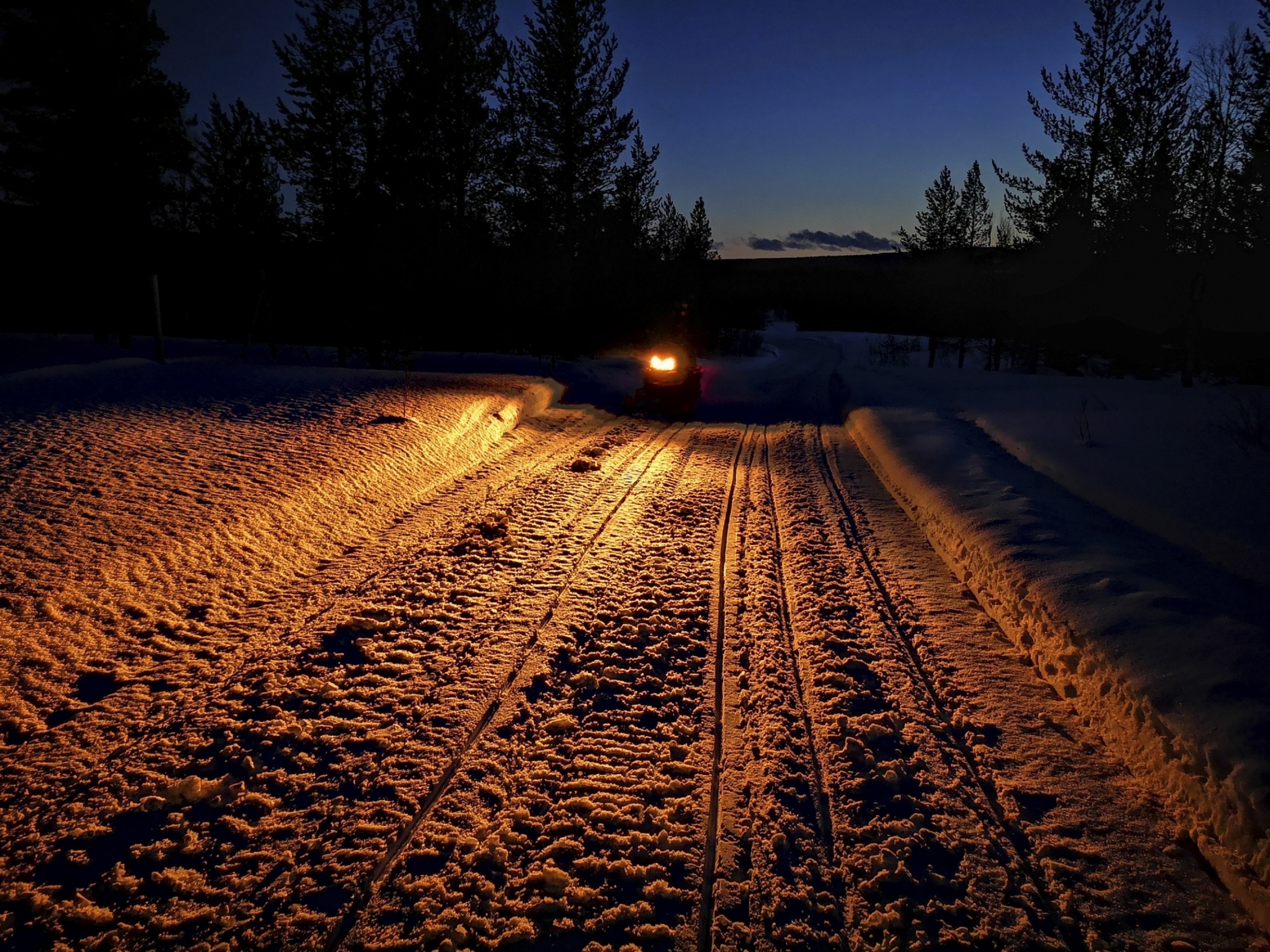 1. Tag. Deutschland => Arvidsjaur => Lodge & erste Motorschlittentour (ca. 2 Stunden).