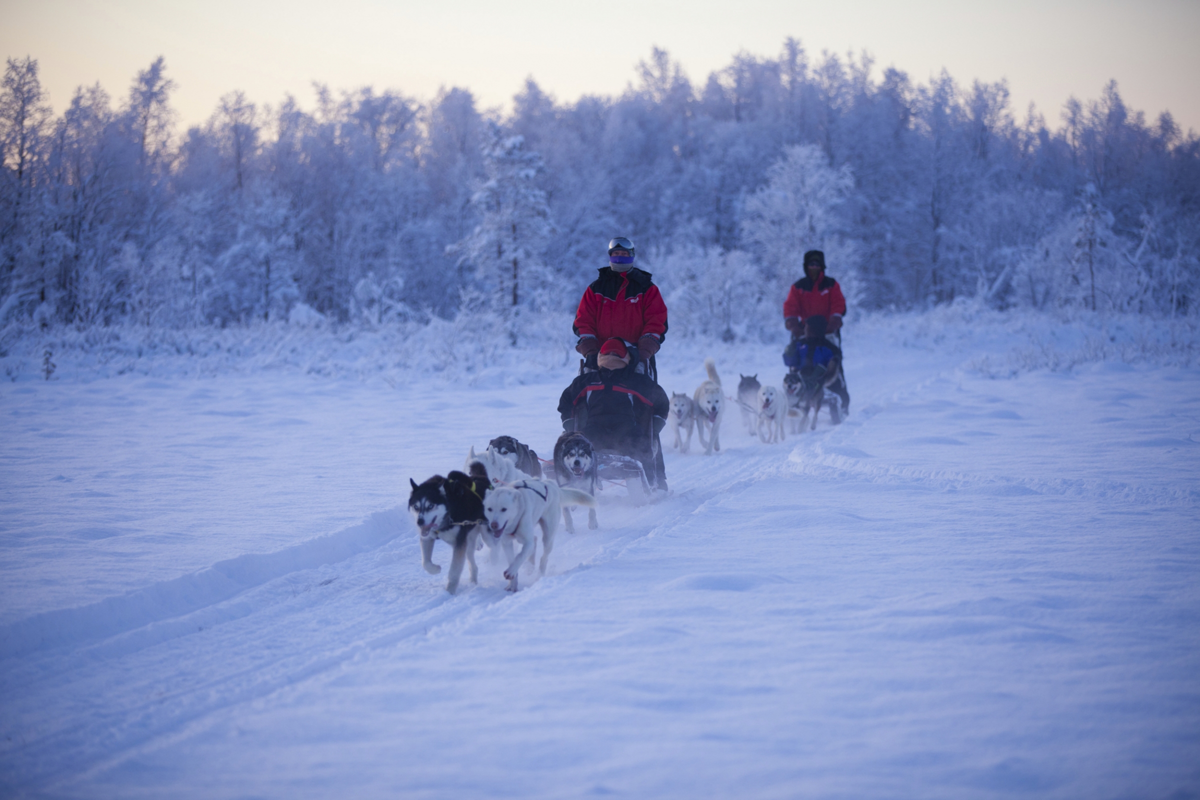 Nach dem Frühstück besuchen Sie das arktische Schlittenhundezentrum von Harriniva mit seinen rund 400 Huskys und erfahren mehr über das Leben dieser Hunde. Ihr Hundeschlittenführer erklärt Ihnen den richtigen Umgang mit dem Schlitten und Sie können sich mit Ihrem Hundegespann bekannt machen. Auf dieser Tour fahren 2 Personen pro Hundeschlitten. Während die eine Person lenkt, sitzt die andere als Passagier im Schlitten. Nach der Hälfte der Huskytour wird gewechselt, so dass jeder Teilnehmer das Hundegespann lenken kann. Sie fahren durch die verwunschen Winterwälder der Umgebung, genießen die Stille und Ruhe und erhalten einen Eindruck von der unberührten Natur Lapplands. Die zurückgelegte Fahrstrecke liegt bei etwa 10 km. Sie kehrem zum Hundeschlittenzentrum zurück und verabschieden sich von den Hunden. Anschließend nach etwa 3 Stunden Rückkehr ins Wildnishotel.