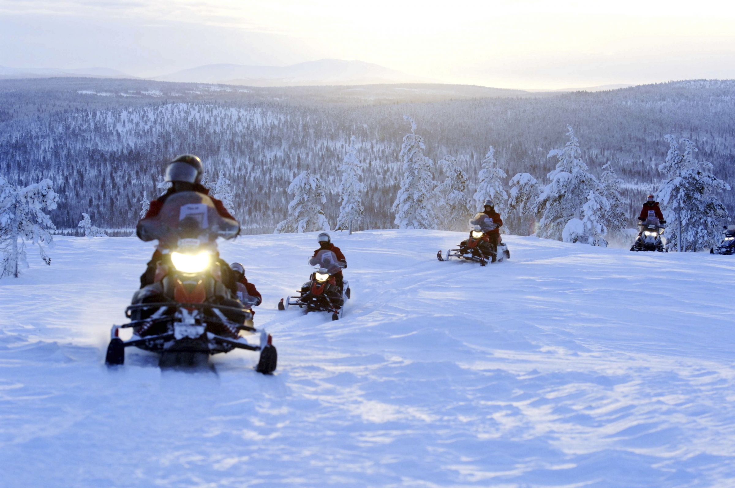 Gipfeltour mit dem Motorschlitten für Fortgeschrittene (ca. 40-60 km, ca. 5 Stunden): Diese Tour ist eine anspruchsvollere Tour in die Bergregionen, die vor allem für Gäste mit Vorkenntnissen im Motorschlittenfahren oder Motorradfahren geeignet ist. Sie erhalten von Ihrem Guide eine Einweisung in die Handhabung der Schneemobile. Dann kann es auch schon losgehen. Sie fahren mit 2 Personen je Motorschlitten. Unterwegs können Sie sich beim Steuern abwechseln. Die Tour führt Sie hinauf in die Bergregionen rund um Muonio und bietet rasante und kurvige Fahrabschnitte sowie fantastische Aussichten auf die unberührte Natur. Nach etwa 5 Stunden kehren Sie zum Ausgangspunkt zurück. Termine: Montag, Donnerstag. Dauer: ca. 11-16 Uhr. Preis: 365 EUR pro Person (2 Personen pro Motorschlitten).