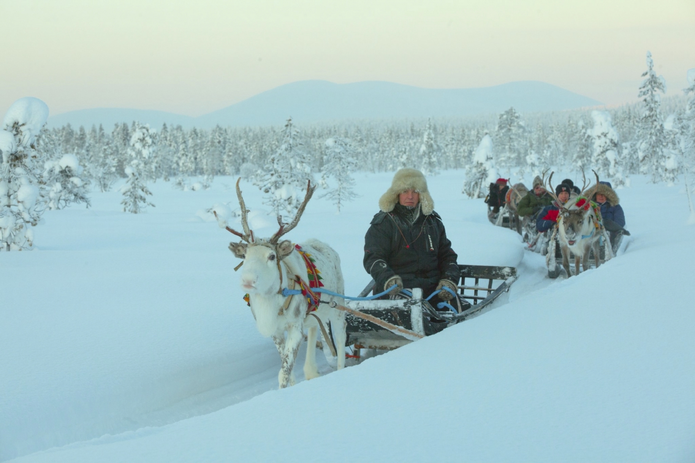Nach dem Mittagessen machen Sie eine etwa 20-minütige Fahrt zur traditionellen Rentierfarm Torassieppi, auf der seit über 100 Jahren Rentierzucht betrieben wird. Hier besuchen Sie das historische Farmhaus und erhalten vom Rentierhirten einen kleinen Einblick in das Leben und die Traditionen als Rentierzüchter. Anschließend unternehmen Sie eine etwa 3 km lange Tour mit dem Rentierschlitten (2 Personen pro Rentierschlitten) durch die traumhafte Winterlandschaft. Anschließend Rückfahrt ins Wildnishotel.