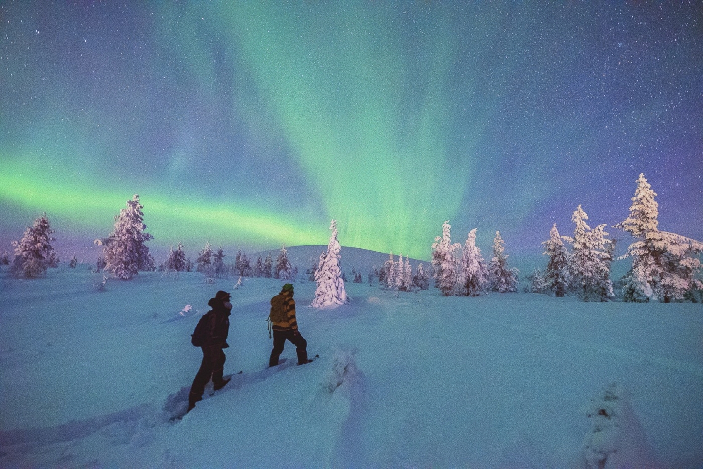 Nach dem Frühstück brechen Sie zu einer geführten Schneeschuhwanderung im Pallas-Ylläs Nationalpark auf. Fahrt mit dem Minibus in die Bergregion des Pallas-Ylläs Nationalparks. Hier machen Sie eine reizvolle Schneeschuhwanderung mit herrlichen Panoramaaussichten. Genießen Sie die schier endlose Weite und traumhaften Aussichten. Mit etwas Glück werden Sie auf Ihrer Wanderung vielleicht auch Rentiere und andere Vertreter der nordischen Tierwelt entdecken, mit ziemlicher Sicherheit werden Sie aber auf die Fährten einer Vielzahl von Wildtieren stoßen.