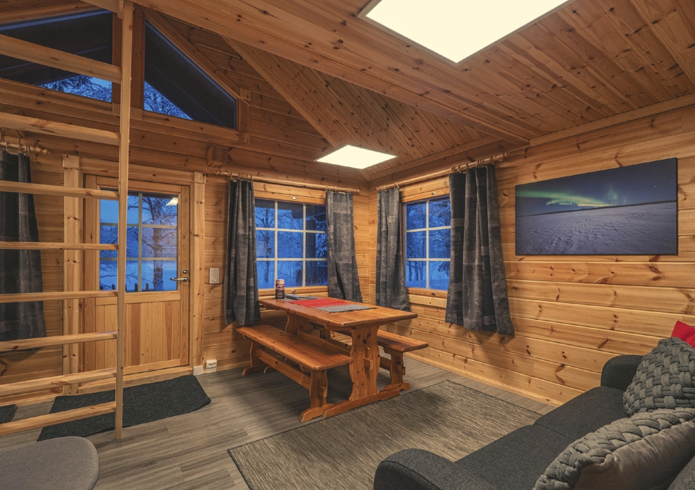 Riverside Blockhaus Harriniva (gegen Aufpreis): Gegen Aufpreis wohnen Sie in einem der 2018 neu erbauten separaten freistehenden typisch finnischen Riverside Blockhäuser (ca. 39-47 m²), die über ein separates Schlafzimmer, ein Loft mit zwei weiteren Schlafplätzen, ein Wohnraum mit Tisch, Sofa und Sitzgelegenheiten, eine vollausgestattete Küchenzeile sowie ein Bad mit Dusche, WC und eine eigene Sauna verfügen. Aufpreis für ein Riverside Blockhaus in Harriniva: 100 EUR pro Person für 3 Nächte (bei 2-er Belegung).