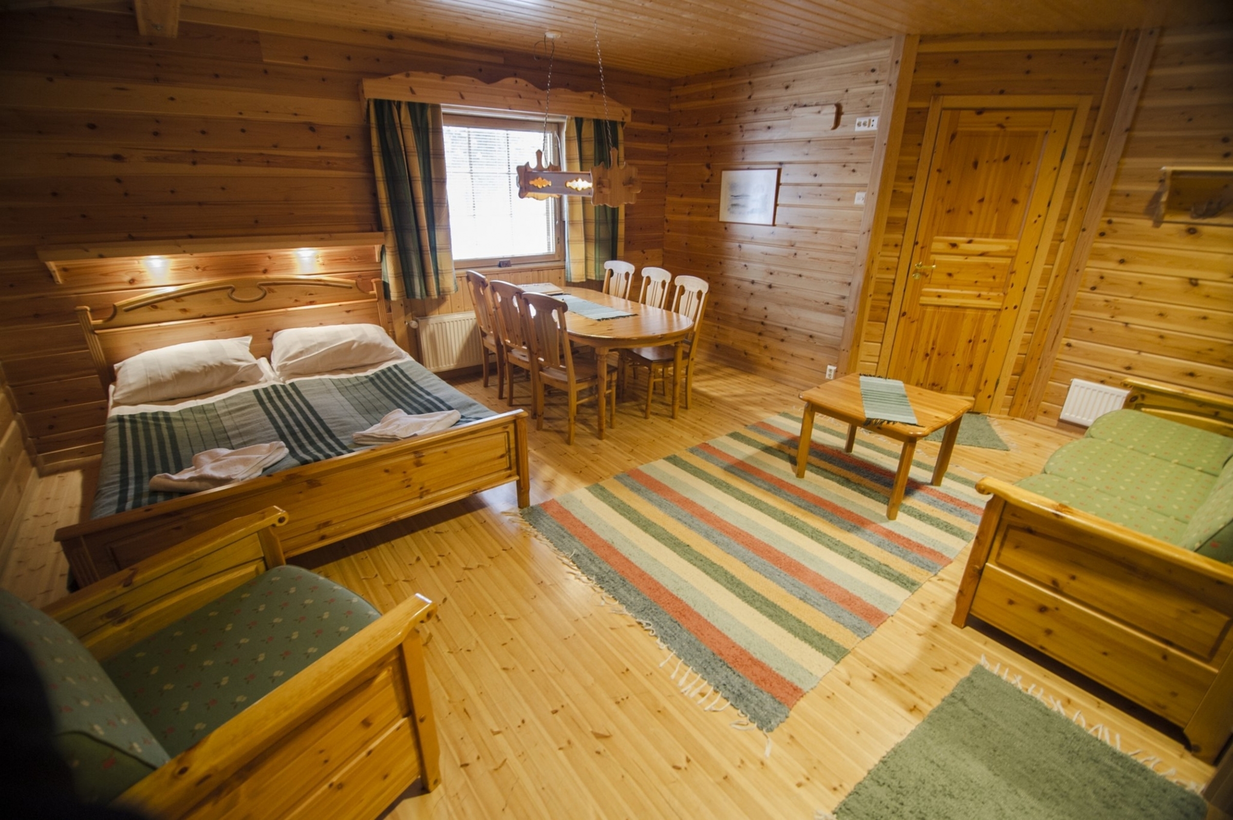Hotelzimmer Harriniva mit eigener Sauna (gegen Aufpreis): Gegen Aufpreis wohnen Sie in einem Hotelzimmer mit eigener Sauna, die ähnlich wie die Standard-Hotelzimmer im Blockhaus-Stil eingerichtet und ausgestattet sind, aber etwas geräumiger sind und zusätzlich über eine private Sauna verfügen. Aufpreis für ein Hotelzimmer mit eigener Sauna in Harriniva: 45 EUR pro Person für 3 Nächte (bei 2-er Belegung).