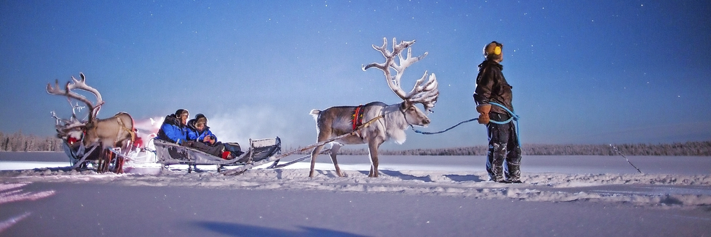 Nordlichtsafari mit dem Rentierschlitten (ca. 2 Stunden): Kurze Fahrt zur traditionellen Rentierfarm Torassieppi, auf der seit über 100 Jahren Rentierzucht betrieben wird. Hier erhalten Sie einen kleinen Einblick in das Leben als Rentierzüchter. Sie machen eine etwa 3 km lange Tour mit dem Rentierschlitten auf dem See und halten Ausschau nach dem farbintensiven Lichtphänomen der Nordlichter, die mit etwas Glück am Nachthimmel zu sehen sind. Termine: Dienstag, Donnerstag, Samstag. Dauer: ca. 20.00 – 22.00 Uhr. Preis: 173 EUR pro Person, 2 Personen pro Rentierschlitten.