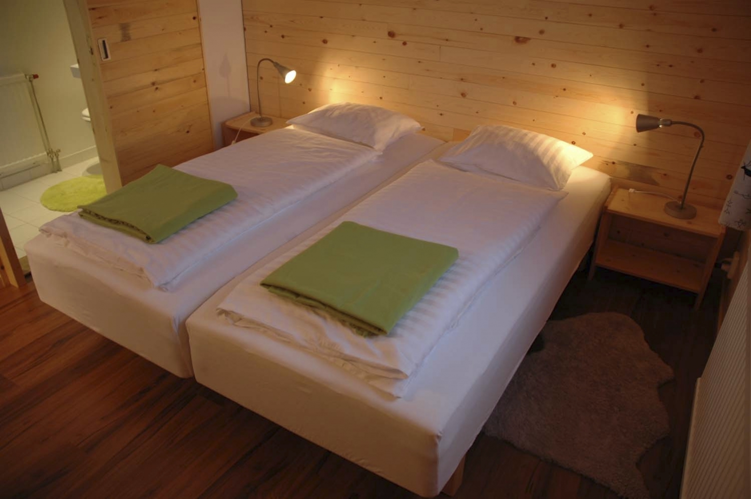 Die Unterbringung auf der Husky Farm von Simone und Jürg erfolgt in gemütlichen Blockhäusern, die auf dem Gelände der Husky Farm liegen. Von hier aus haben Sie einen schönen Blick auf die Husky Farm und auf den (im Winter zugefrorenen) See. Ein Blockhaus verfügt über ein Doppelzimmer, im zweiten Blockhaus sind zwei Doppelzimmer untergebracht. Zwei weitere Gästezimmer sind im Haupthaus untergebracht. Alle Zimmer sind individuell und gemütlich und geschmackvoll Zimmer eingerichtet, haben jeweils einen separaten Eingang und verfügen über ein Bad mit Dusche, WC und Haartrockner. Im Haupthaus befindet sich ein zentraler gemütlicher Aufenthaltsraum mit Holzofen zur Verfügung. Hier servieren Ihnen Ihre Gastgeber auch das liebevoll zubereitete Frühstück und Abendessen (wenn es nicht direkt am Feuer in der Grillhütte am See zubereitet und eingenommen wird). Außerdem steht Ihnen auf der Husky Farm eine holzbefeuerte Sauna zur Verfügung. Darüber hinaus gibt es auch eine Badetonne unter freiem Himmel. Diese wird einmal pro Woche eingeheizt.