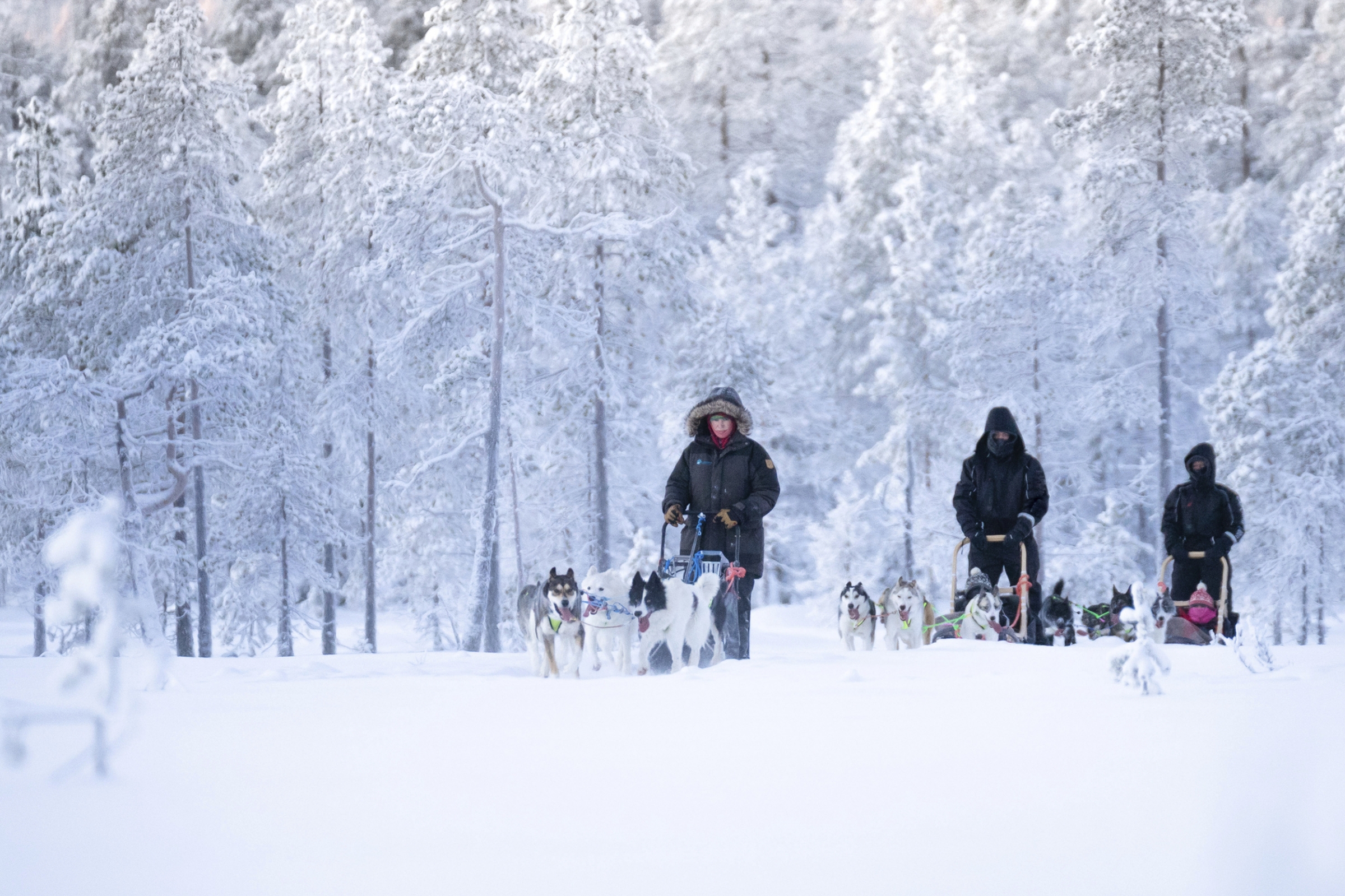 Nach dem Frühstück machen Sie sich bereit für Ihr Abenteuer. Die nächsten vier Tage sind Sie auf einer Huskysafari von Hütte zu Hütte unterwegs. Ihr Tour führt durch tief verschneite Wälder, über zugefrorene Seen, Flüsse und über ausgedehnte zugefrorene Feuchtgebiete, wo Sie einen Eindruck von der unglaublichen Weite und Stille Lapplands erhalten.