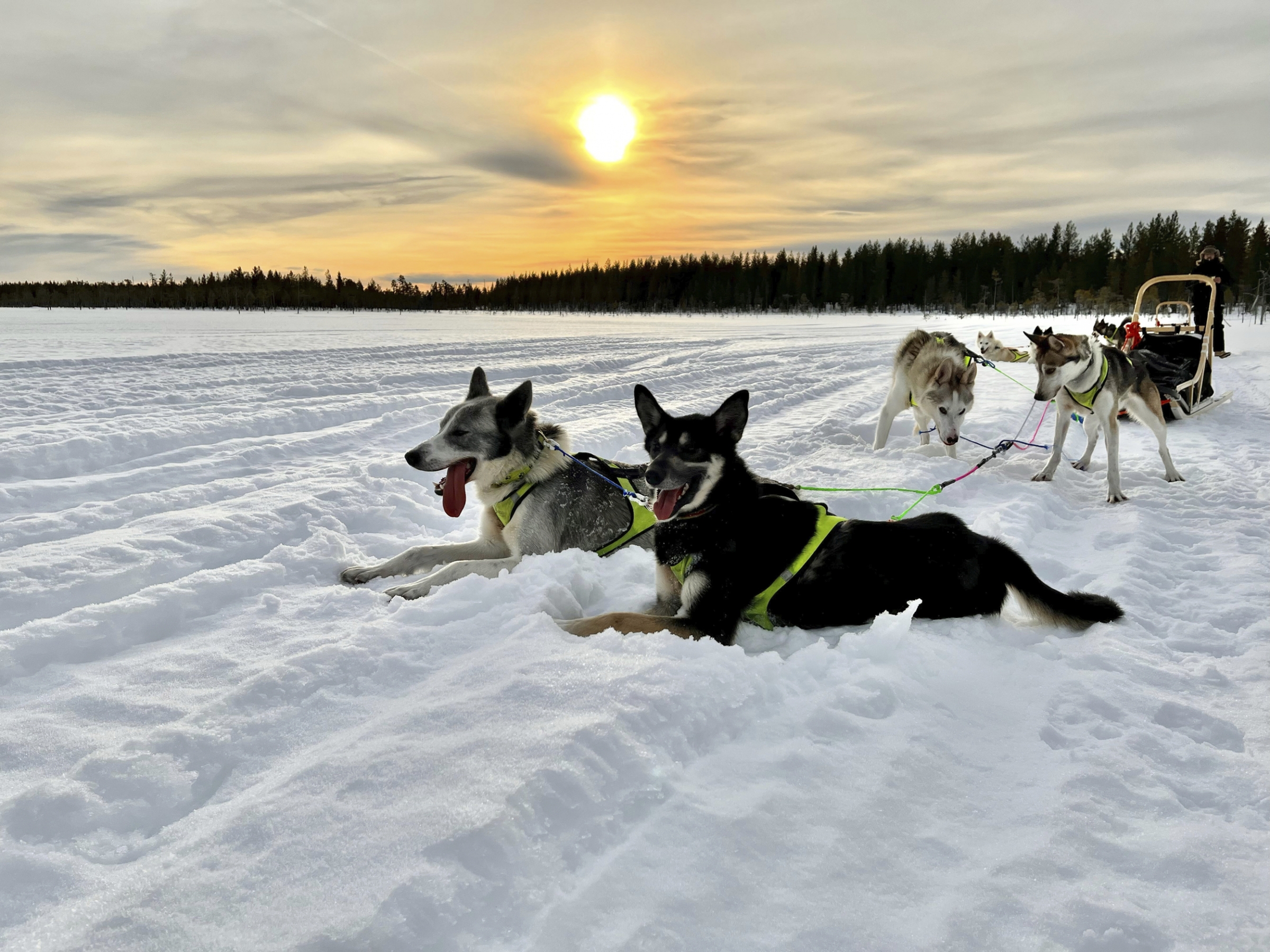 Nach dem Frühstück werden Sie für eine Einführungstour abgeholt. Sie erhalten zunächst wetterfeste Kleidung und eine ausführliche Einweisung in die Handhabung des Schlittens und der Fahrtechnik. Sie lernen auch die Hunde kennen, die Sie sicherlich freudig begrüßen. Im Anschluss an die Einweisung werden die Hunde vor den Schlitten gespannt. Dann geht es los zu Ihrer ersten Tour. Die heutige Tour mit dem Hundeschlitten umfasst eine Länge von etwa 20 km. Nach der Rückkehr zur Husky Farm kümmern Sie sich gemeinsam um die Hunde legen eine kleine Mittagspause ein. Sie können in Ihrem Zimmer entspannen oder machen vielleicht noch einen Spaziergang in die Umgebung der Husky Farm. Gemütliches Abendessen und Übernachtung im Gästehaus der Husky Farm.