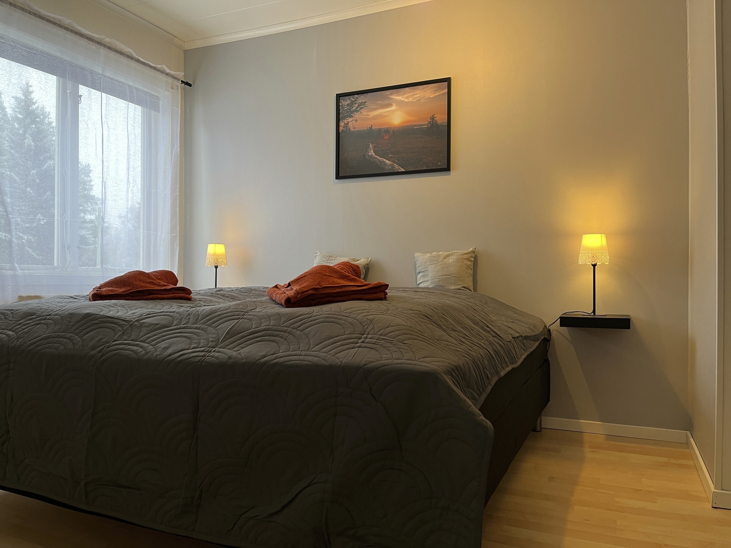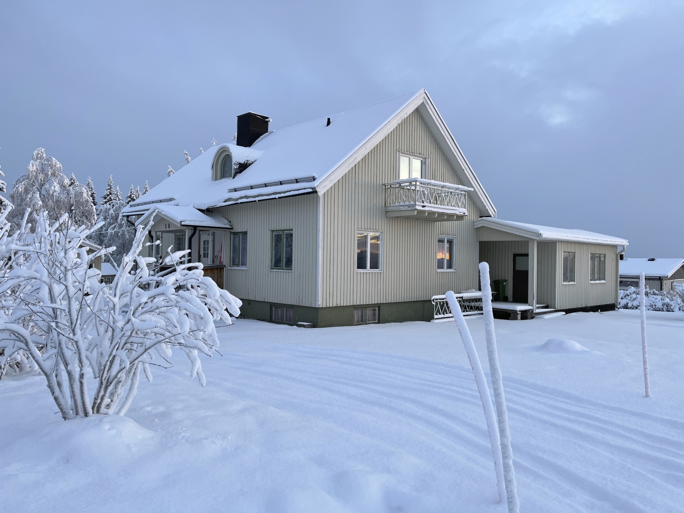 Übernachtung im Gästehaus Prästgården: Die Unterbringung erfolgt im gemütlichen Gästehaus der Husky Farm Prästgården, das etwa 5 km von der Husky Farm und dem Wohnhaus von Raphael und Yvonne entfernt liegt. Das Gästehaus Prästgården liegt im Herzen des schönen kleinen schwedischen Dorfes Glommersträsk und diente früher als Wohn- und Empfangshaus des örtlichen Pfarrers (Prästgården = Pfarrhaus). Es ist ein typisch rustikales Holzhaus im schwedischen Stil, nur die Außenfarbe ist nicht rot, sondern weiß. Bevor Raphael und Yvonne das Haus zum Gästehaus umfunktioniert haben, wurde es umfänglich renoviert und bietet jetzt moderne und gemütliche Zimmer. Das Haus ist sehr geräumig und bietet vier Schlafzimmern mit jeweils zwei Betten (insgesamt Platz für bis zu 8 Personen). Es gibt ein gemütliches Wohn- und Esszimmer mit einem Kamin und einem großen Esstisch und Sofa. Außerdem eine Küche und ein Bad mit Dusche und WC. Wohnraum, Küche und Bad sind Gemeinschaftseinrichtungen, die von allen gemeinsam genutzt werden. Im gemütlichen Wohn- und Esszimmer servieren Ihnen Ihre Gastgeber auch das liebevoll zubereitete Frühstück und Abendessen. Das Mittagessen nehmen Sie meist auf den Touren oder auf der Husky Farm zu sich.