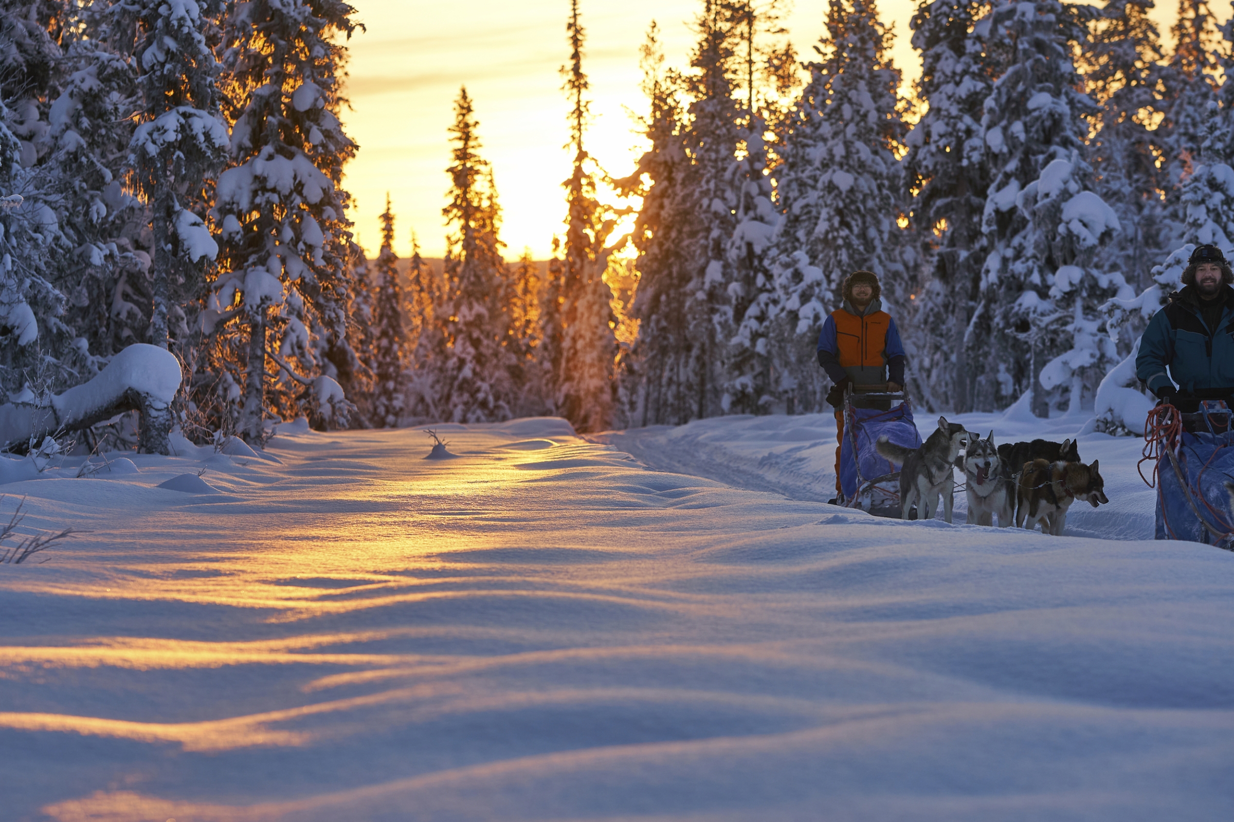 Outdoor-Mittagessen unterwegs am Lagerfeuer. Am Nachmittag nach etwa erreichen Sie dann Ihre erste Übernachtungshütte im Nationalpark. Nach der Ankunft in der Berghütte werden gemeinsam die Hunde versorgt, die Hütte beheizt und das Abendessen zubereitet. Gemeinsames Abendessen und gemeinsamer Ausklang des Abends.