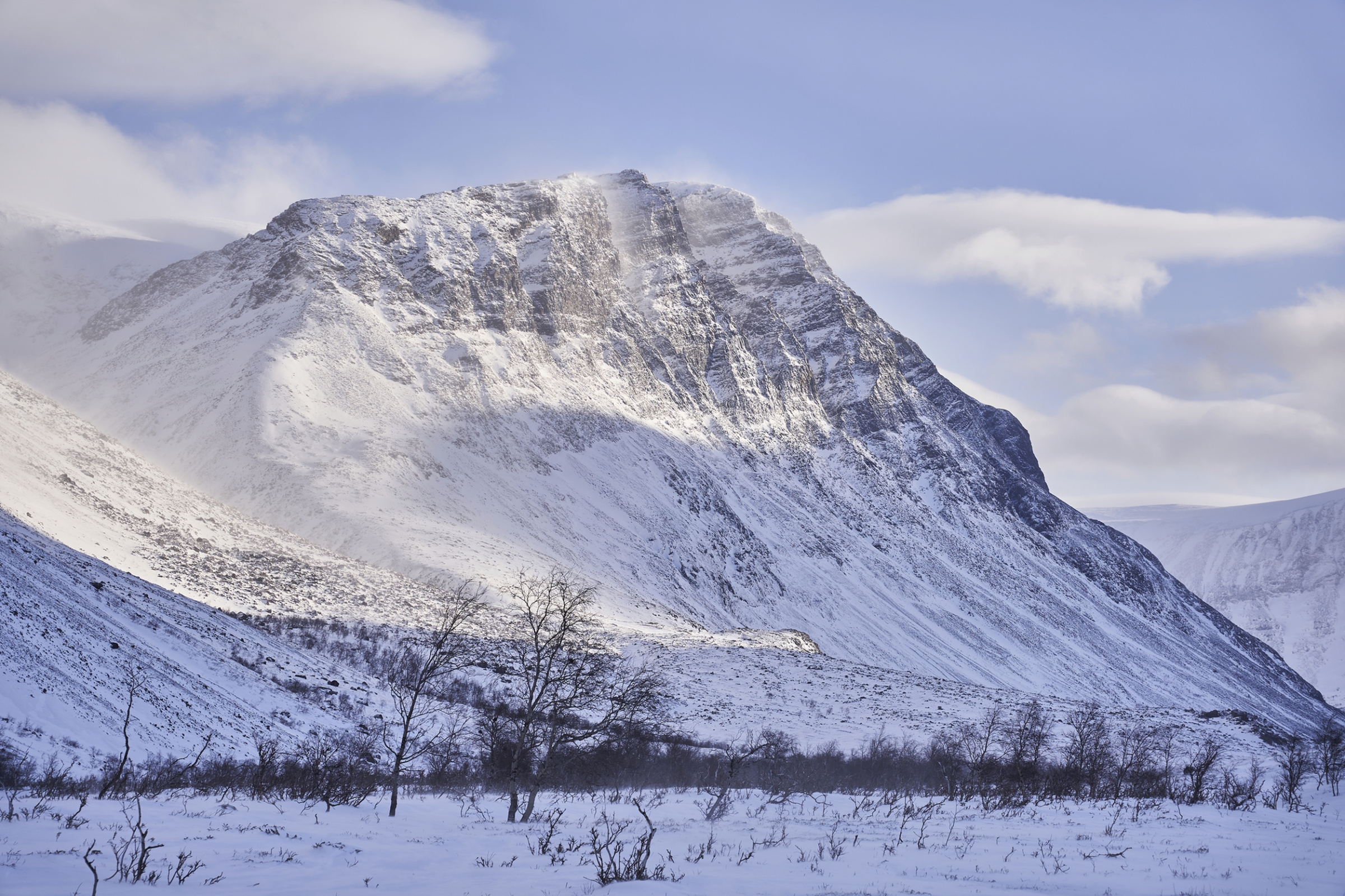 Nach einem stärkenden Frühstück folgt heute eine anstrengendere Tagesetappe, die Sie bergauf in die umliegenden Berge führt. Belohnt werden Sie mit herrlichen Panoramen und einer traumhaften Bergkulisse. Immer wieder werden Sie herrliche Ausblicke und Panoramen genießen können. Am Ende der heutigen Etappe ist allerdings keine Berghütten-Übernachtung möglich, sondern Sie verbringen heute eine Nacht in einem traditionellen Lavvu-Zelt (samisches Tipizelt), wie es auch die samischen Ureinwohner nutzen, wenn Sie die Rentiere auf ihren Wanderungen begleiten. Gemeinsam bauen Sie das Lavvu-Zelt an einem schönen und geeigneten Platz in den Bergen auf.