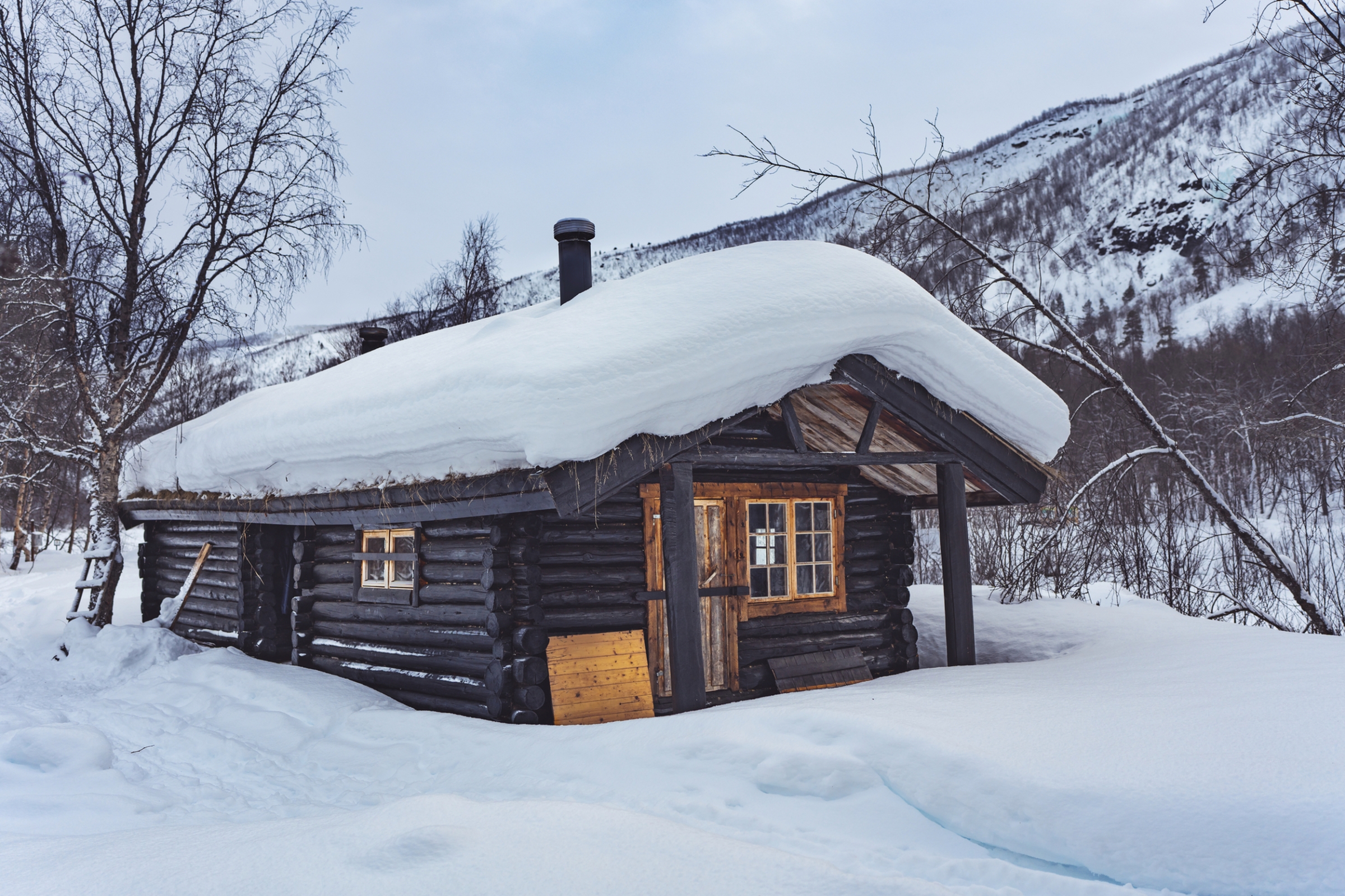 Berghütten: Während der Hundeschlittensafari übernachten Sie meist in gemütlichen, aber einfach und rustikal ausgestatteten Berghütten ohne Elektrizität und ohne fließendes Wasser und mit Außentoilette (Trockentoilette). Die Hütten verfügen in der Regel über einen großen Wohn- und Schlafraum, in dem alle Teilnehmer gemeinsam übernachten. Übernachtet wird im Schlafsack auf Matratzen. Die notwendigen Arbeiten unterwegs (Hunde versorgen, Hütte beheizen, Essen kochen etc.) werden gemeinsam erledigt. Wasser wird aus einer Quelle geschöpft oder aus Schnee gewonnen. Einige Hütten sind auch etwas komfortabler und verfügen über separate Wohn-/Schlafräume, manche sogar über eine Sauna, in Ausnahmefällen manchmal auch über Elektrizität. Zeltübernachtung im Notfall.