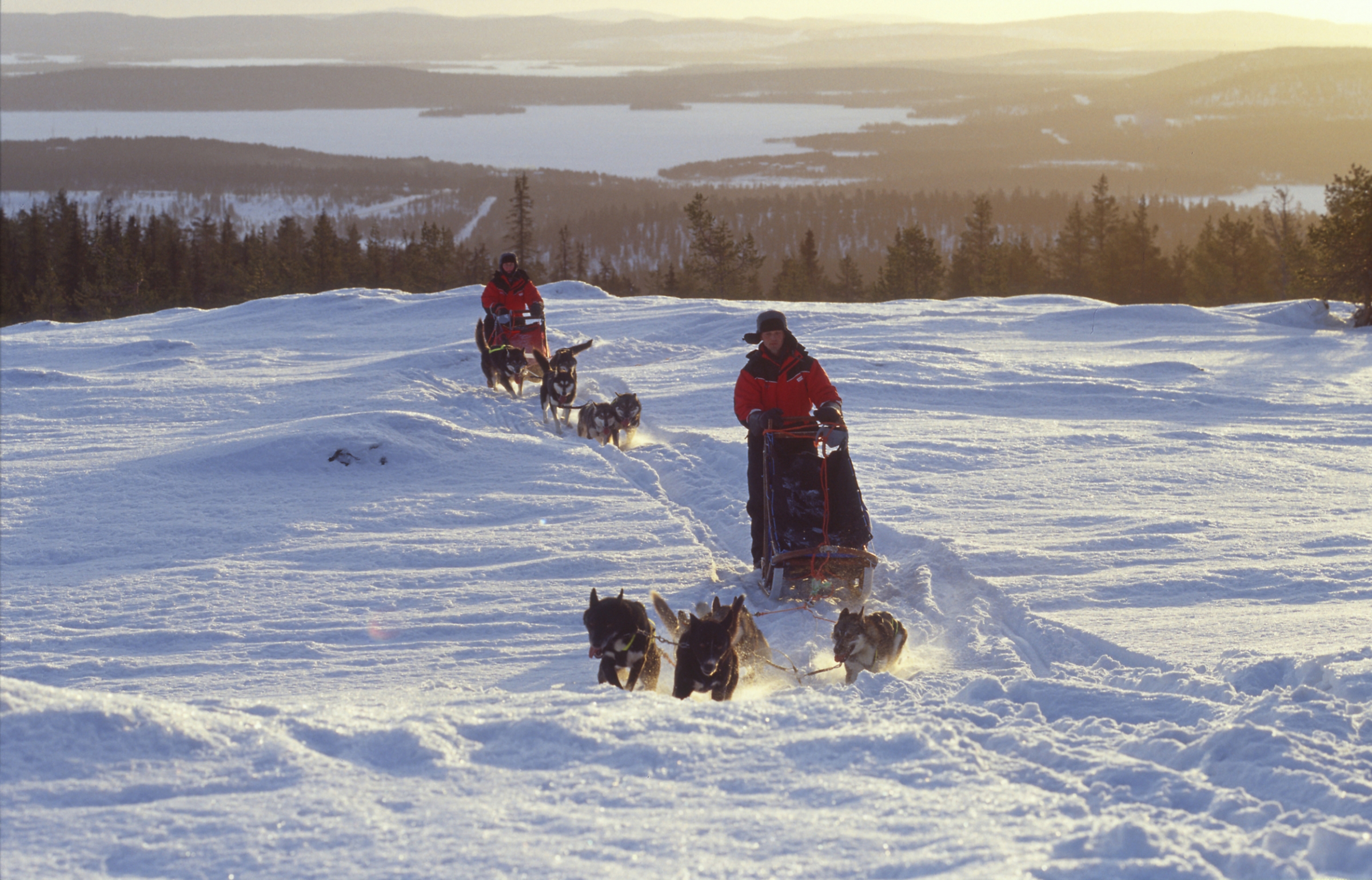 5 Tage werden Sie auf dieser Hundeschlittentour mit Ihrem eigenen Hundegespann mit 4-6 Hunden durch die unberührte Natur unterwegs sein. Diese abwechslungsreiche Huskytour führt Sie durch tief verschneite, märchenhafte Wälder und über zugefrorene Seen und Flüsse am Rande des Pallas-Yllästunturi Nationalparks, wo Sie die unberührte Natur Lapplands genießen können. Sie gehen auf Tuchfühlung mit der lappländischen Bergwelt jenseits der Baumgrenze und genießen atemberaubende Aussichten über die endlos weite Wildnis. Sie erleben die wunderbare Stille der Natur, unterbrochen nur durch das Hecheln der Hunde oder von einem gelegentlichen Heulkonzert.