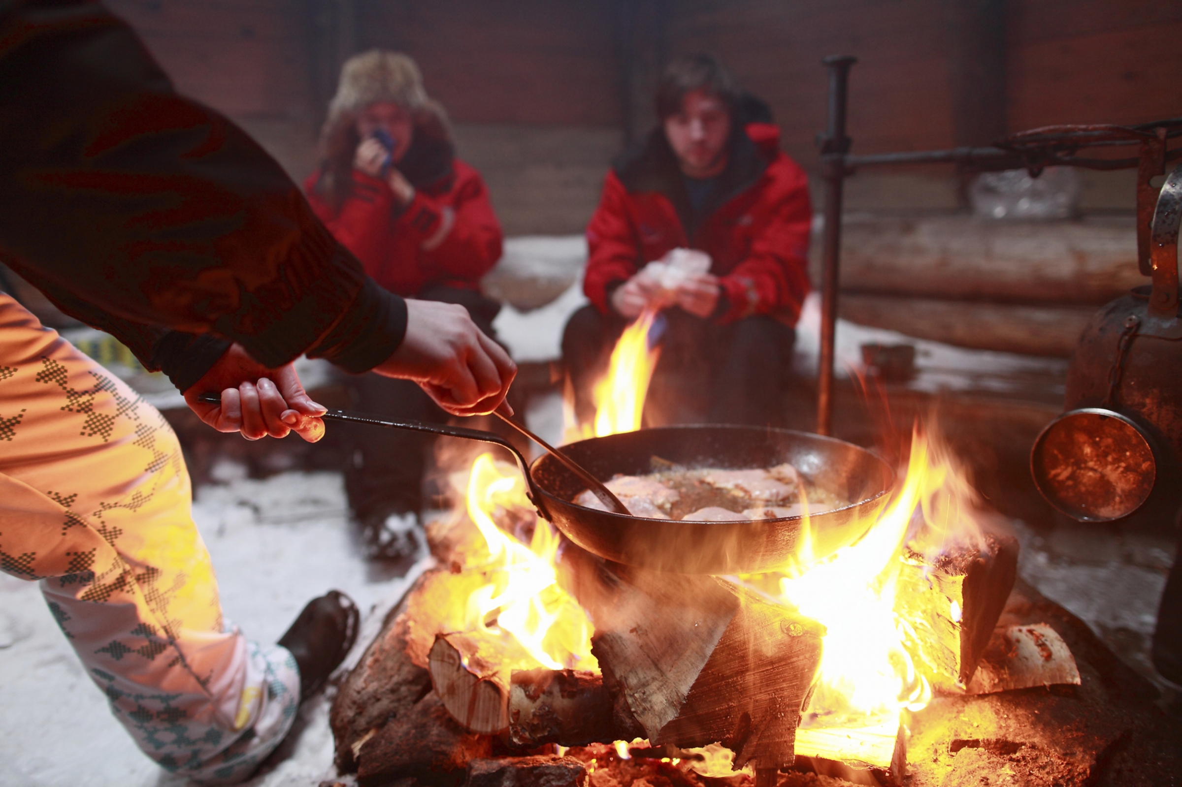 Ausflug zum Eisangeln (ca. 3 Stunden): Sie machen einen Ausflug zu einem nahegelegenen Gewässer und versuchen Ihr Glück beim Eisangeln. Mit dem Motorschlitten (Sie sitzen dabei auf einem Schlitten, der vom Motorschlitten des Guides gezogen wird) begeben Sie sich auf ein zugefrorenes Gewässer in der Umgebung, wo Sie Ihr Glück versuchen. Eisfischen ist eine der beliebtesten Winterbeschäftigungen der Finnen. Ihr Guide erklärt Ihnen die Ausrüstung und die Techniken beim Eisangeln. Dann bohren Sie ein Loch in die Eisdecke und versuchen gemeinsam Ihr Glück. Mit Heißgetränken am Lagerfeuer können Sie sich zwischendurch wärmen. Termine: Samstag. Dauer: 10-13 / 14-17 Uhr. Preis: 149 EUR pro Person.