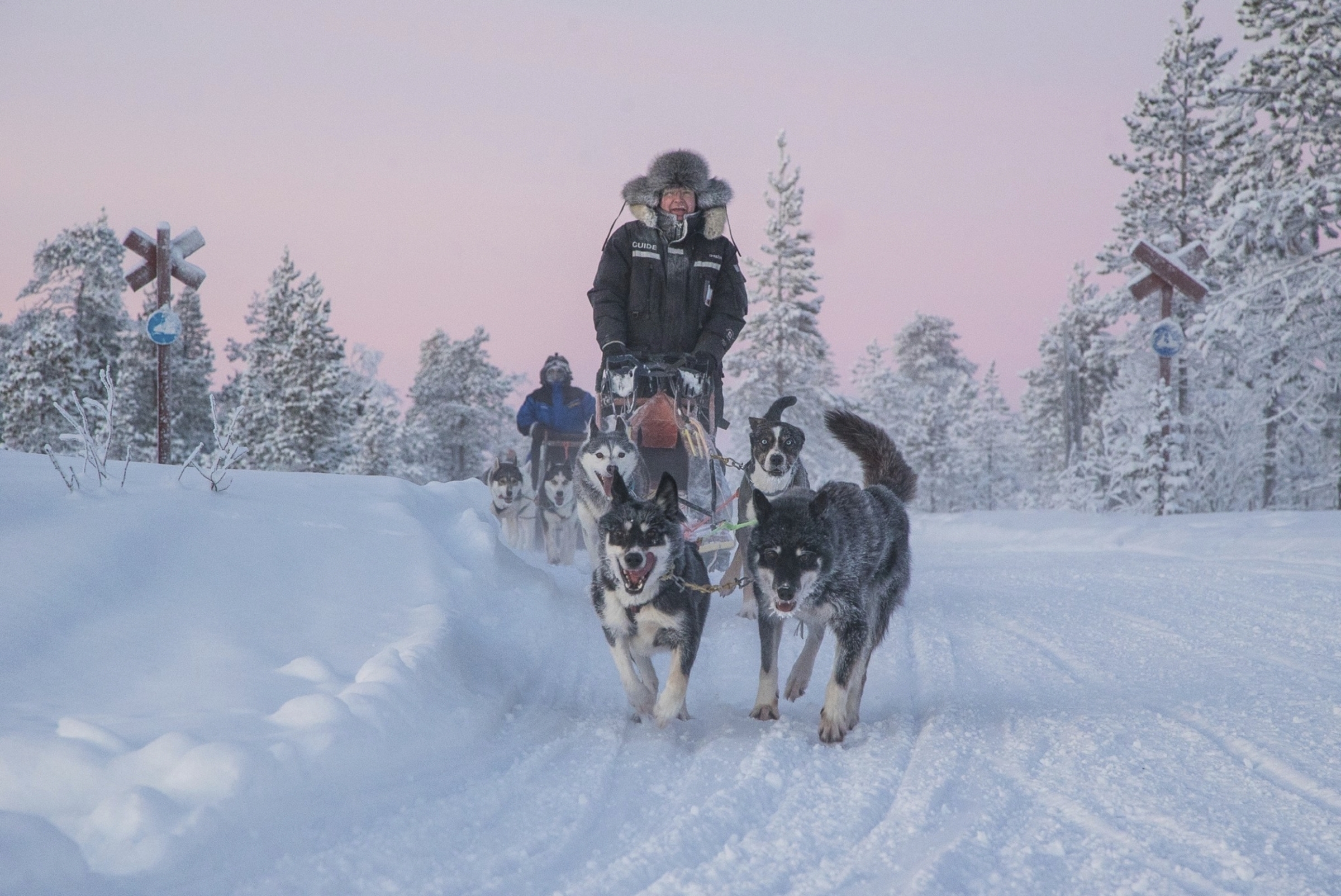 2. – 6. Tag. 5-tägige Hundeschlittensafari am Rande des Pallas-Yllästunturi N.P. (ca. 25-40 km pro Tag). Lapland Relax Abend mit Sauna und Hot Pool sowie Dinner im Schneerestaurant.