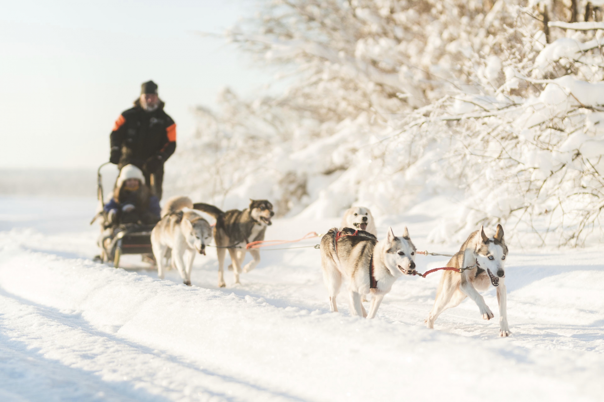 Kurze Hundeschlittentour (ca. 5 km/ca. 10 km): Bei der Arctic Circle Wildnis Lodge gibt es den Winter über ein kleines temporäres Husky Camp, von dem aus kurze Hundeschlittentouren mit einer Länge von ca. 5 km bzw. 10 km in die Umgebung der Lodge durchgeführt werden. Im Husky Camp werden Sie herzlich begrüßt, lernen die Hunde kennen und erhalten eine Einführung ins Hundeschlittenfahren. Dann lenken Sie Ihren eigenen Hundeschlitten (2 Personen pro Schlitten bzw. 2 erwachsene Person + max. 2 Kinder) durch die herrliche unberührte Natur, die die Lodge umgibt. Genießen Sie die Fahrt mit dem Hundegespann durch die tiefverschneiten Wälder Lapplands und erhalten Sie einen tollen kleinen Eindruck in die Welt der Schlittenhunde. Ihre Tour endet wieder im Husky Camp, wo Sie heißen Getränken und Keksen am Lagerfeuer in einem Lavo-Zelt empfangen werden und wo Zeit bleibt, sich von den freundlichen Huskys ausgiebig zu verabschieden.