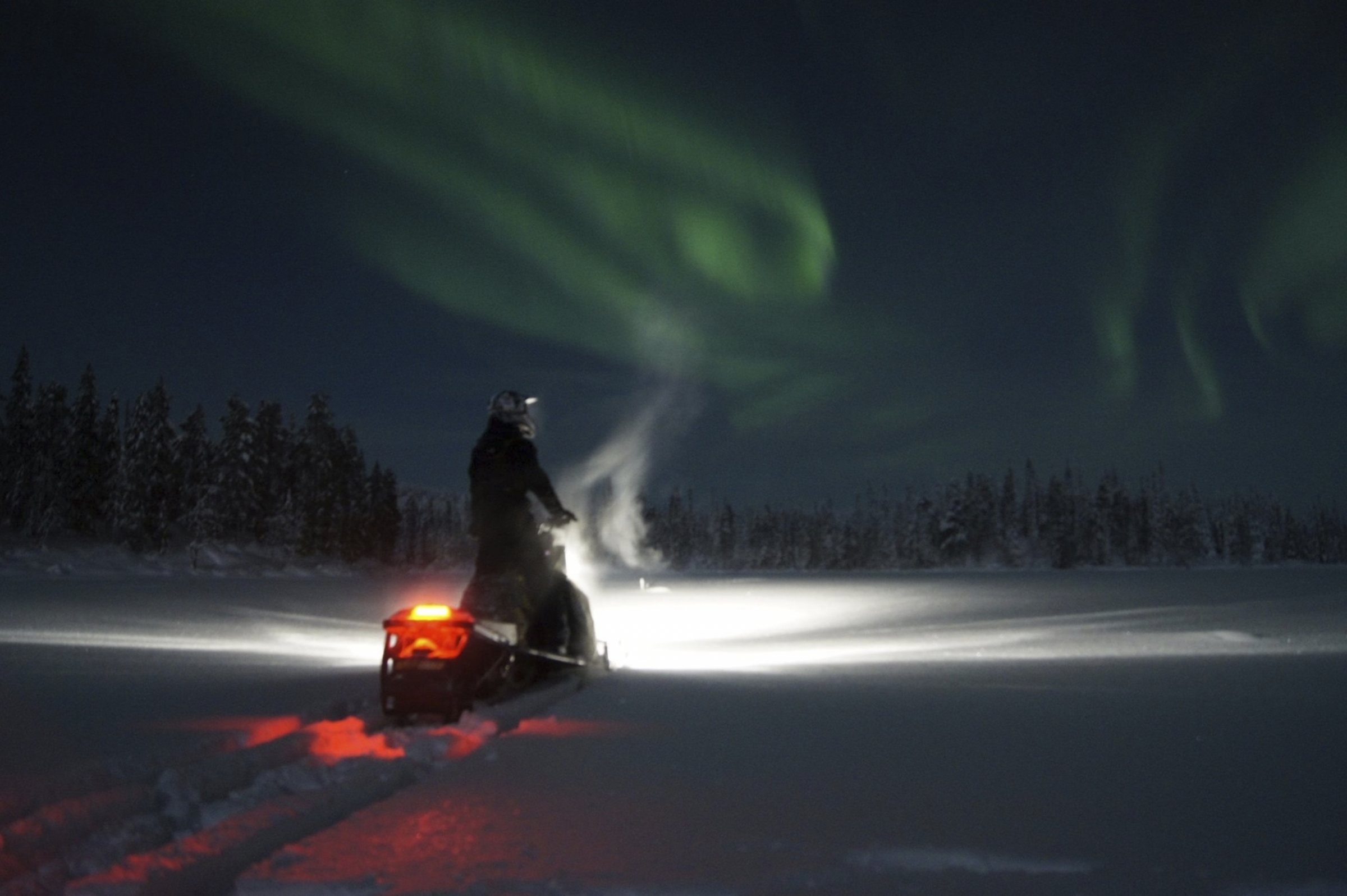 Nordlichtsafari mit dem Motorschlitten (ca. 3 Stunden): Abendliche Schneemobiltour von ca. 15-25 km Länge durch die winterliche Landschaft. Fernab von allen künstlichen Lichtquellen machen Sie an einem Lagerfeuer Rast und halten Ausschau nach dem Leuchten der Nordlichter am Himmel. Danach Rückkehr zum Ausgangspunkt. Termine: Täglich. Dauer: ca. 20.00 – 23.00 Uhr, Preis: 149 EUR pro Person, 2 Personen pro Motorschlitten. (Kind, 4-14 Jahre: 75 EUR). Aufpreis für Alleinbenutzung: 70 EUR pro Person.