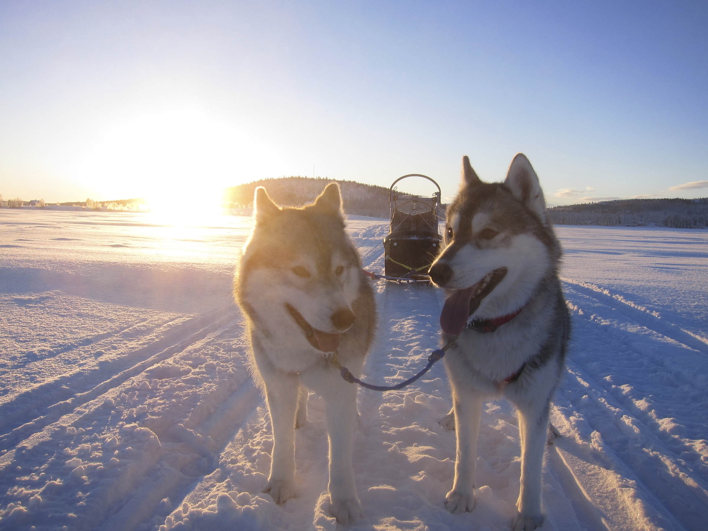 Hundeschlittentour kurz (ca. 2 Stunden) oder lang (ca. 4 Stunden): Nach dem Kennenlernen der Hunde erhalten Sie eine Einweisung in den Umgang mit dem Hundeschlitten. Dann steuern Sie Ihr Gespann mit 4-6 Huskys durch die herrliche Winterlandschaft Lapplands. Ein tolles Erlebnis. Dabei teilen sich 2 Personen ein Gespann. Während der eine lenkt, sitzt der andere als Passagier im Schlitten. Unterwegs wird gewechselt. Eigenes Hundegespann (1 Person pro Hundeschlitten) gegen Aufpreis möglich. 4-stündige Tour inklusive Mittagessen unterwegs am Lagerfeuer.