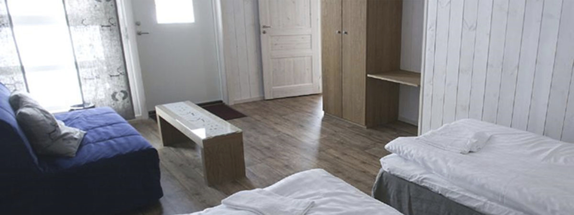 Die 8 etwa 20m² großen Hotelzimmer sind hell, gemütlich und liebevoll im skandinavischen Stil eingerichtet und bieten alle einen separaten Eingang, Sofa, WLAN und ein eigenes Bad mit Dusche und WC.