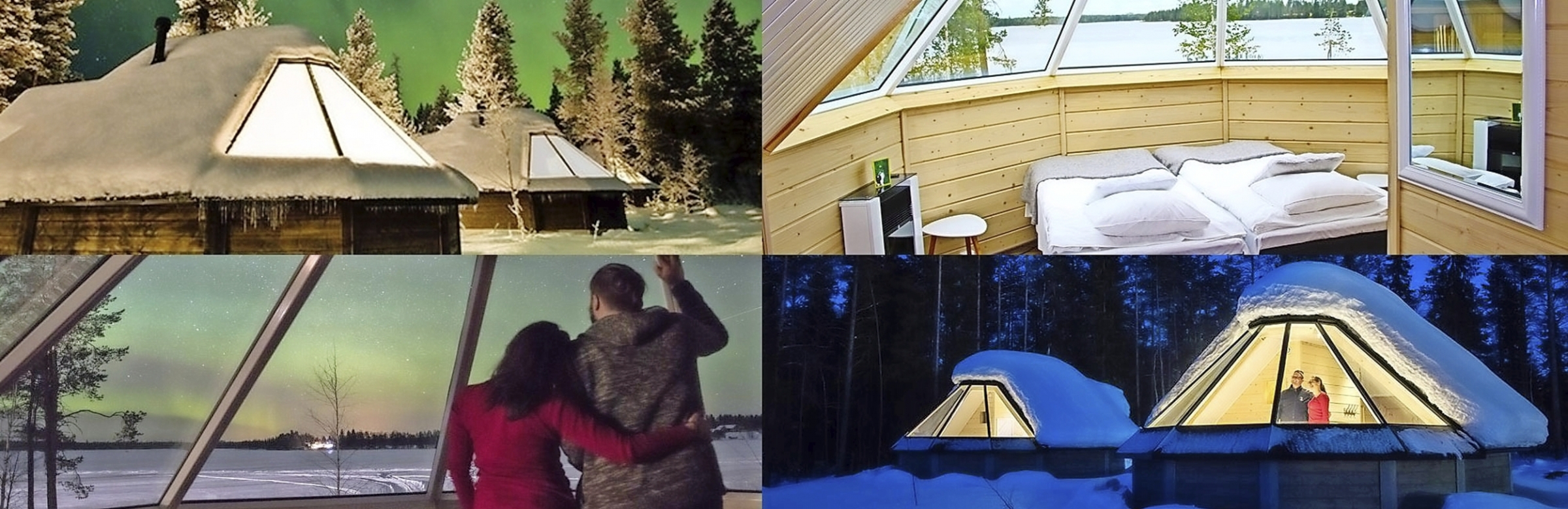 Option: Aurora Sky Cabins: Die Aurora Sky Cabins der Saija Lodge wurden im Sommer 2017 neu erbaut. Sie liegen am Ufer des See Jokijärvi, etwa 50-100 Meter vom Hauptgebäude der Lodge entfernt, und bieten Ihnen einen unbegrenzten und ungestörten Blick auf den Polarhimmel gen Norden. Die Aurora Sky Cabin -Hütten sind komfortabel und gemütlich wie ein Hotelzimmer eingerichtet, bieten Ihnen uneingeschränkte Privatsphäre durch einen eigenen Eingang und sind von außen nicht einsehbar. Die Aurora Sky Cabins sind für 2-3 Personen geeignet und verfügen u.a. über ein hochwertiges Doppelbett direkt unterm Glasdach mit ungestörtem Blick auf den Nachthimmel, ein Schlafsofa, WC, Dusche und eine Sauna.