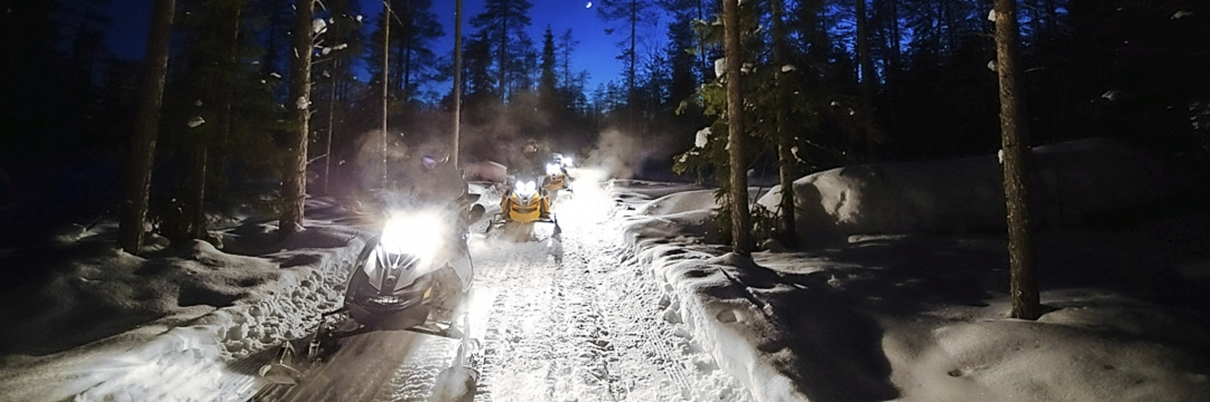 8 Tage im Zeichen von Geschwindigkeit, Spaß und Abenteuer im hohen Norden Finnlands. Entdecken Sie die unberührte Natur vom Motorschlitten aus. 4 Tage verbringen Sie im Sattel und legen dabei rund 300 km in einer zauberhaften Winterwelt zurück. Die rasante Fahrt über zugefrorene Seen und Sumpflandschaften mit den wendigen Schneemobilen wird Ihr Herz ein ums andere Mal höher schlagen lassen. Auf einer zweitägigen Safari übernachten Sie in einer Wildnishütte fernab der Zivilisation. Dort genießen Sie absolute Winterruhe und haben vielleicht das Glück Nordlichter oder Elche beobachten zu können.