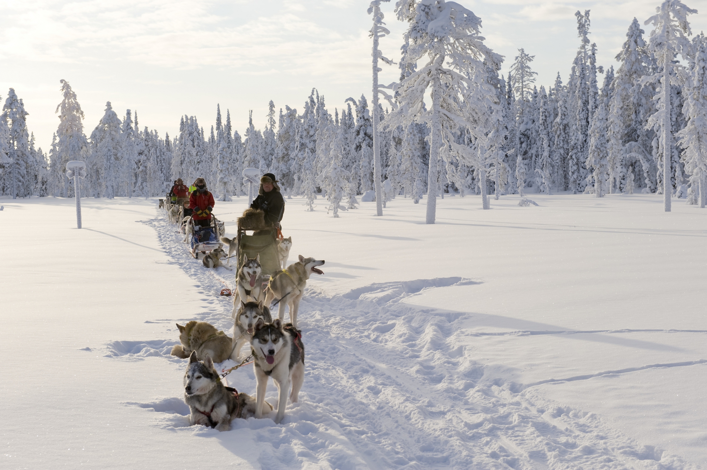 Tagestour mit dem Hundeschlitten: Sie besuchen die Huskys und erhalten eine Einführung in den Umgang mit den Hunden und dem Hundeschlitten. Gemeinsam werden die Hunde eingespannt und dann kann es auch schon losgehen. Auf dieser Tagestour steuern Sie Ihr eigenes Hundegespann mit 4-6 Hunden über zugefrorene Flüsse und Seen, durch tief verschneite Märchenwälder und offene zugefrorene Sumpf-und Moorgebiete. Unterwegs machen Sie eine Mittagsrast inmitten der unberührten Natur und Ihr Guide wird Ihr Mittagessen am offenen Feuer inmitten der Wildnis zubereiten. Länge: ca. 30 km. Dauer: ca. 4-6 Stunden. Preis: 330 EUR pro Person bei 1 Person pro Hundeschlitten. (Es ist auch möglich, sich einen Hundeschlitten zu teilen. Während eine Person steuert, sitzt die andere als Passagier im Schlitten. Preis bei 2 Personen pro Hundeschlitten: 260 EUR pro Person).