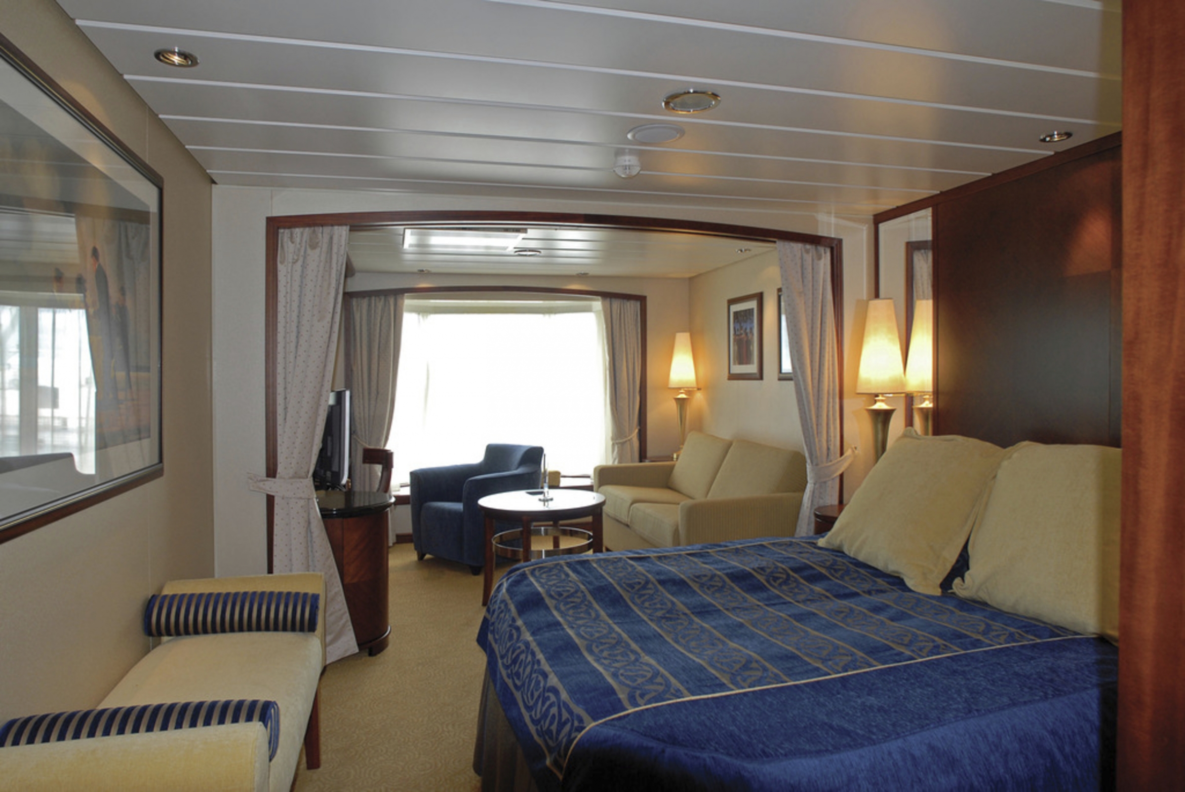 Color Suite mit Meerblick: 24,5 m² große Kabine mit herrlichem Meerblick. Die Kabinen verfügen über ein Doppelbett und eine separate Sitzgruppe. Die Benutzung des Color SPA- und Fitnesscenters, Frühstück im Observation Club und eine erweiterte Minibar sind im Preis enthalten. Außerdem steht Ihnen im Terminal vor Einschiffung die VIP-Lounge und ein Gepäckservice in Kiel zur Verfügung. Brückenbesuch zum Jahreswechsel am 31.12.2025. Die Color Suiten liegen auf den Decks 9, 10 und 11 und verfügen über ein großes Fenster mit herrlichem Meerblick, einen Wohnbereich, Telefon, TV, Safe, Haartrockner, Minibar, WLAN-Internetzugang, Hosenpresse sowie ein Bad mit Dusche und WC. (2-er Belegung).