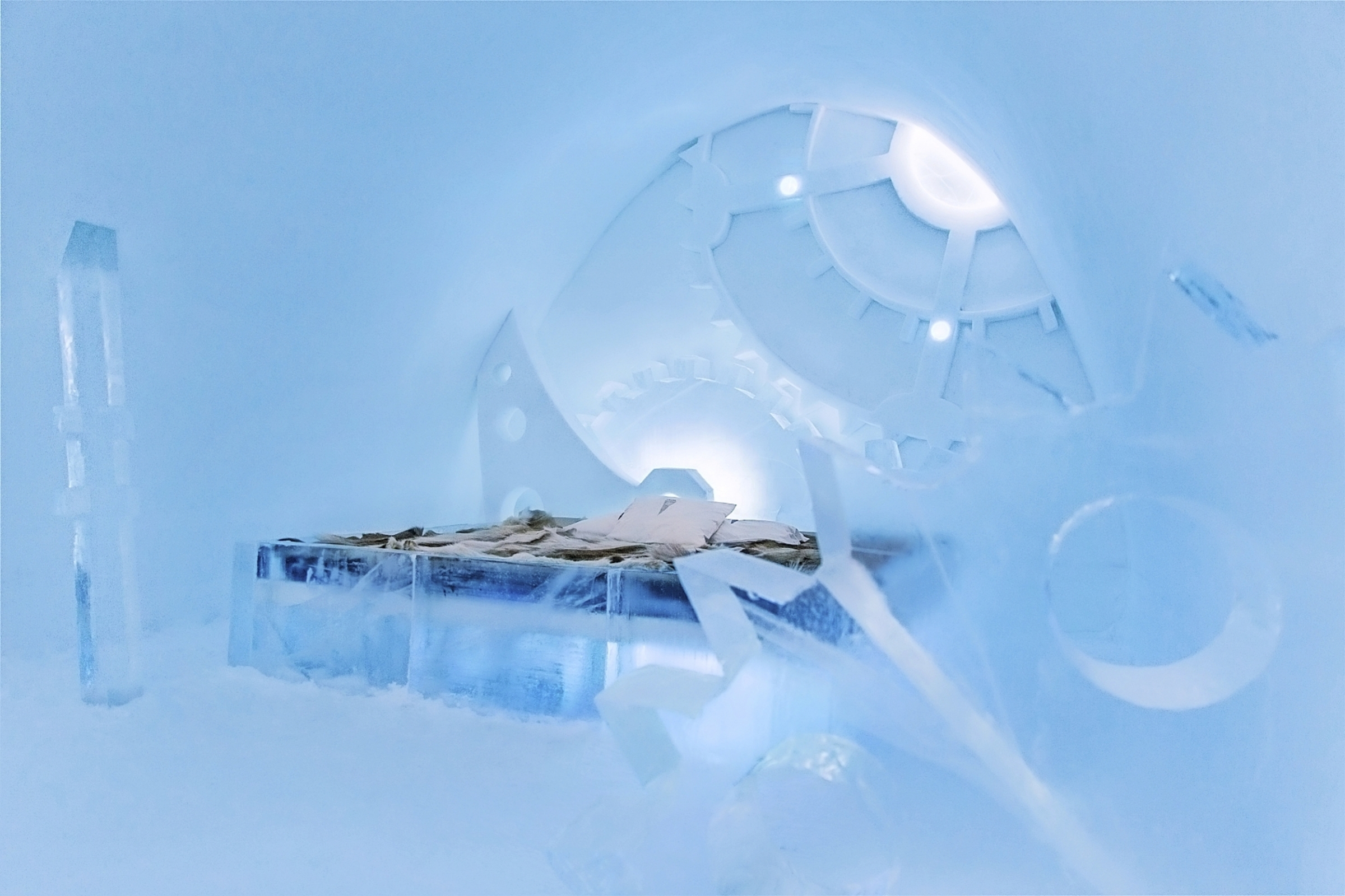 Nach dem Frühstück Fahrt in das Dorf Jukkasjärvi (ca. 15 km) und Besuch im berühmten Icehotel. Das Icehotel wird jedes Jahr neu aus dem Eis des Torneälv erbaut und kunstvoll ausgestattet. Die weitläufige Anlage besteht aus dem aus Eis erbauten Icehotel mit Zimmern und Suiten verschiedener Kategorien und der Eiskirche sowie einigen aus Holz und Stein erbauten Gebäuden, in denen die Umkleideräume mit Gepäckaufbewahrung, die Sauna und Waschräume (alle mit direktem Zugang vom Icehotel), Rezeption und Lounge sowie Bar, Restaurants und ein Souvenirshop untergebracht sind. Außerdem dem neuen Icehotel 365 mit der Icebar und einigen Zimmern aus Eis, die das ganze Jahr über zugänglich sind. Solarzellen und eine Grasbeschichtung sorgen für die entsprechende Kühlung in den Sommermonaten. Auf einer Führung durch das Icehotel können Sie die kunstvoll gestalteten Räumlichkeiten aus Eis erleben und erfahren viel Wissenswertes über die jährliche Produktion und Hintergründe des Icehotels.