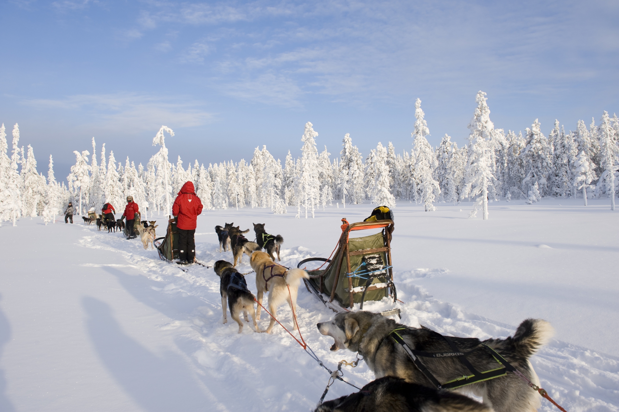 Nach dem Frühstück wird es heute sportlich. Sie bekommen eine kurze Einführung ins Langlaufen und machen anschließend mit Ihrem Guide einen kleinen Ausflug durch die märchenhaft verschneiten Wälder der Umgebung. Die Tour dauert etwa zwei Stunden. Nach dem Mittagessen können Sie auf eigene Faust erneut auf die Bretter steigen und langlaufen. Am Nachmittag besuchen Sie die Huskys. Die kälteliebenden Hunde freuen sich schon auf eine Tour mit Ihnen. Nachdem Sie eine Einführung in die Technik des Schlittenhundefahrens erhalten haben und sich auf dem Schlitten sicher fühlen, machen Sie eine erste Trainingsfahrt mit Ihrem Gespann. Diese erste Hundeschlittentour ist etwa 10-15 km lang und jeder Teilnehmer fährt dabei sein eigenes Hundeteam von 4-6 Hunden (1 Personen pro Hundeschlitten. Auf Wunsch ist es aber auch möglich, sich einen Hundeschlitten zu teilen: 2 Personen pro Hundeschlitten).