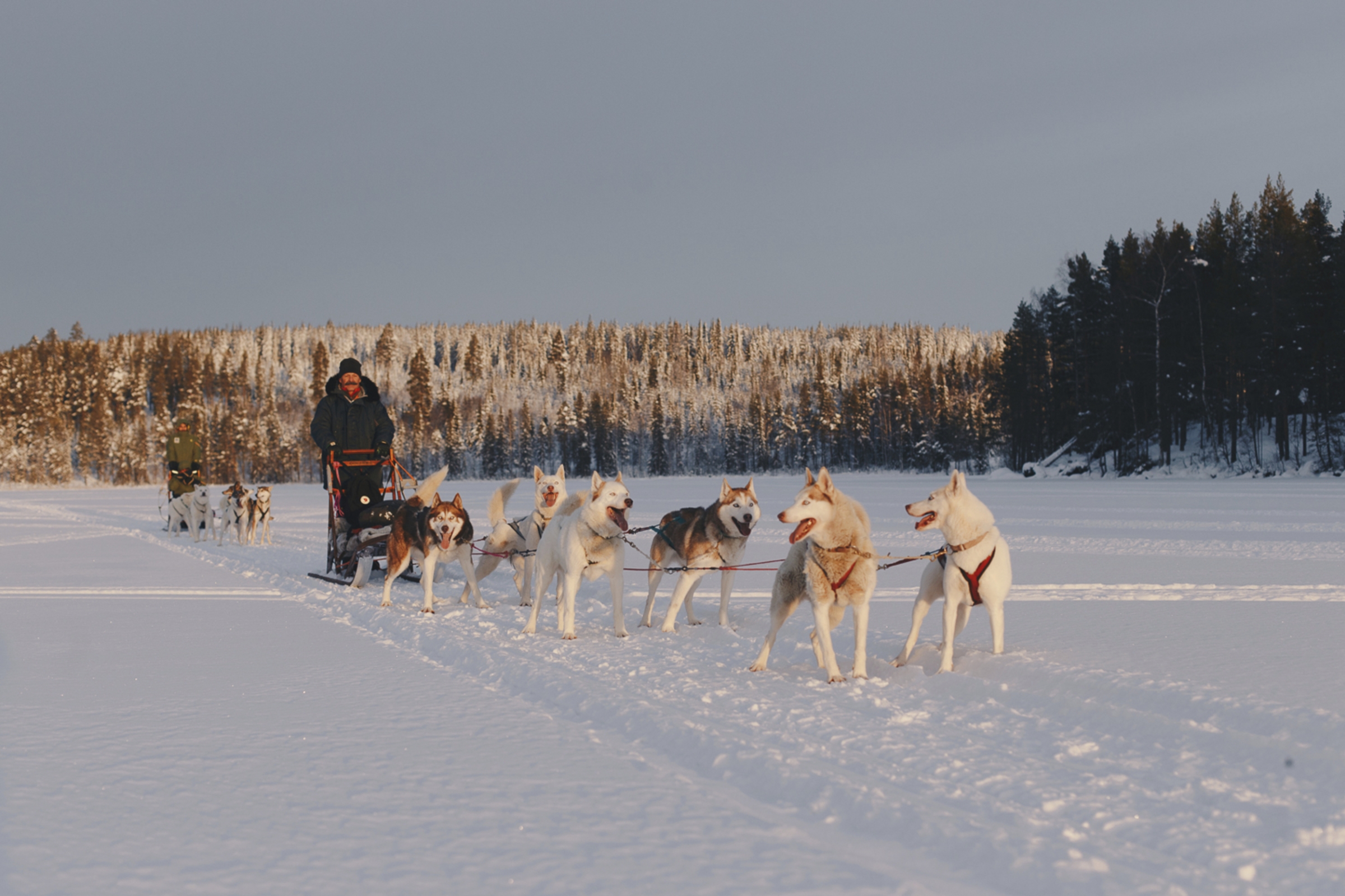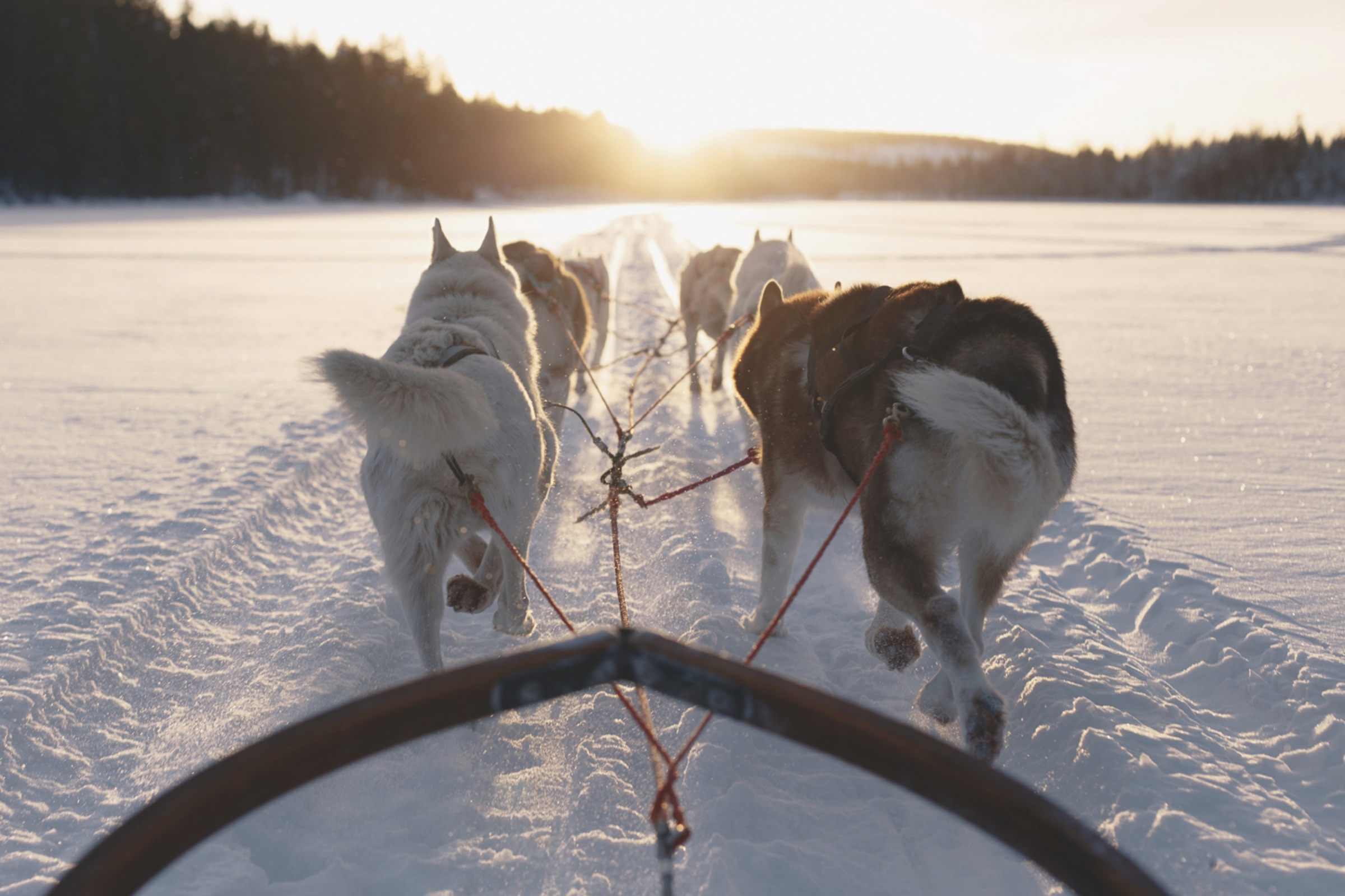 Tagestour mit dem Hundeschlitten (ca. 9 Stunden, 1 Person pro Schlitten): Transfer zu einer Husky Farm (ca. 1 Stunde pro Weg). Hier erhalten Sie eine ausführliche Einweisung in den Umgang mit dem Hundeschlitten und mit den Hunden und steuern dann Ihr eigenes Hundegespann mit 4-6 Huskys durch die herrliche Winterlandschaft Lapplands. Ihre heutige Strecke ist etwa 30 km lang und führt durch verschneite Waldgebiete und über zugefrorene Sumpfgebiete und Flüsse und Seen. Ein tolles Erlebnis. Jeder Teilnehmer steuert auf dieser Safari sein eigenes Hundegespann (1 Person pro Hundeschlitten). Unterwegs machen Sie Mittagsrast am Lagerfeuer. Danach kehren Sie zur Husky Farm zurück. Transfer zurück zur Lodge. Dauer: ca. 7 Stunden inkl. Transfers. Preis: 735 EUR pro Person. Teilnehmerzahl: Min. 2 Personen.