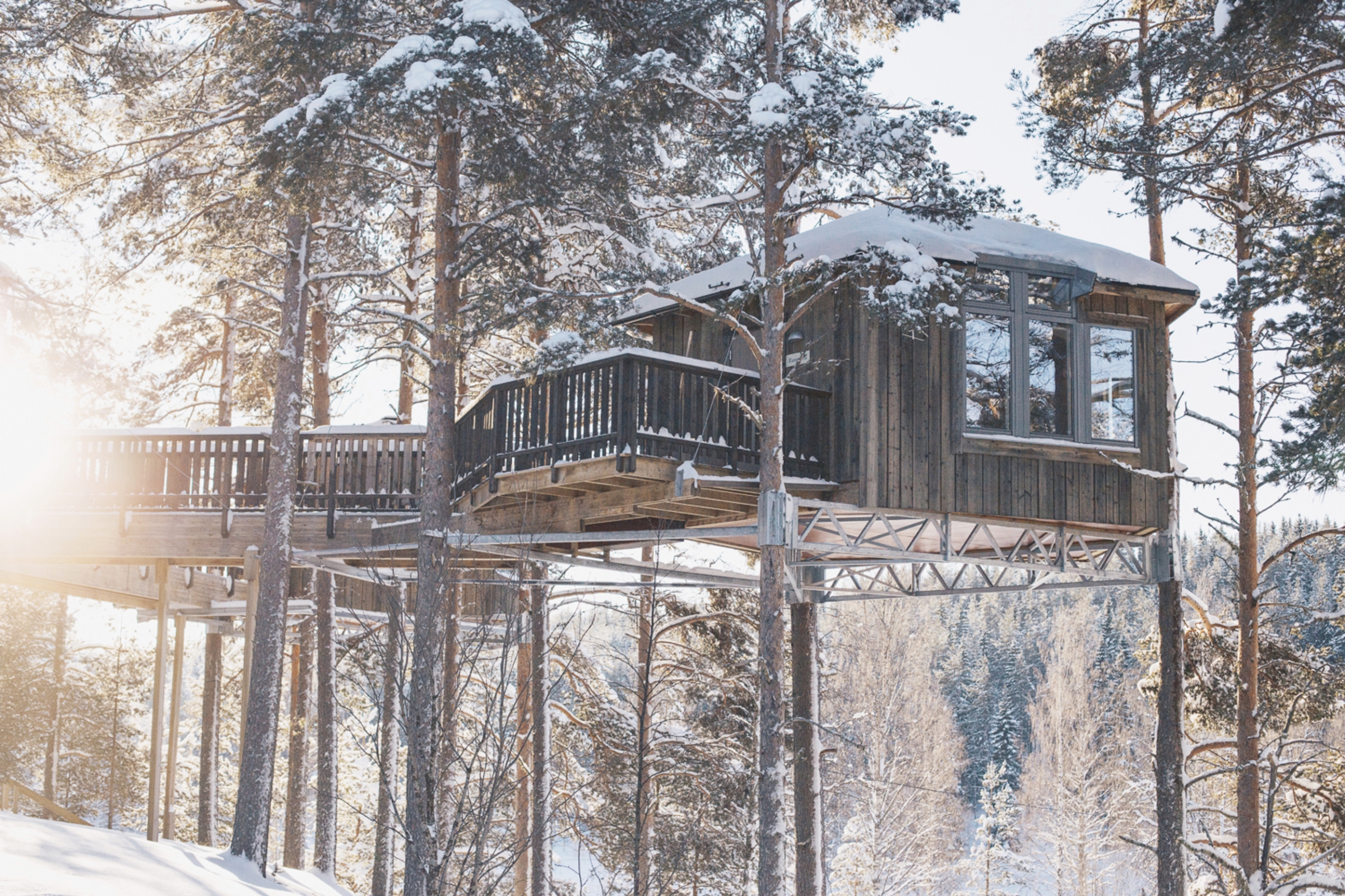 Aurora Baumhäuser (gegen Aufpreis): Die komfortablen 25m² großen Aurora Baumhäuser, in denen man zwischen den Baumwipfeln übernachtet, sind ausgestattet mit einer kleinen Küchenzeile mit Kühlschrank sowie Kaffe- und Teezubehör, großem Doppelbett, TV, Sitzgelegenheit, WLAN, Fußbodenheizung und eigenem Bad mit Dusche und WC. Die großen Panoramafenster geben einen freien Blick in die wunderschöne Natur. Von der hauseigenen Terrasse genießen Sie einen einzigartigen Ausblick über den Wald, den Umeälven und die kleine vorgelagerte Insel. Die Aurora Baumhäuser können auch für einzelne Nächte gebucht werden. Preis für Einzelnächte auf Anfrage.