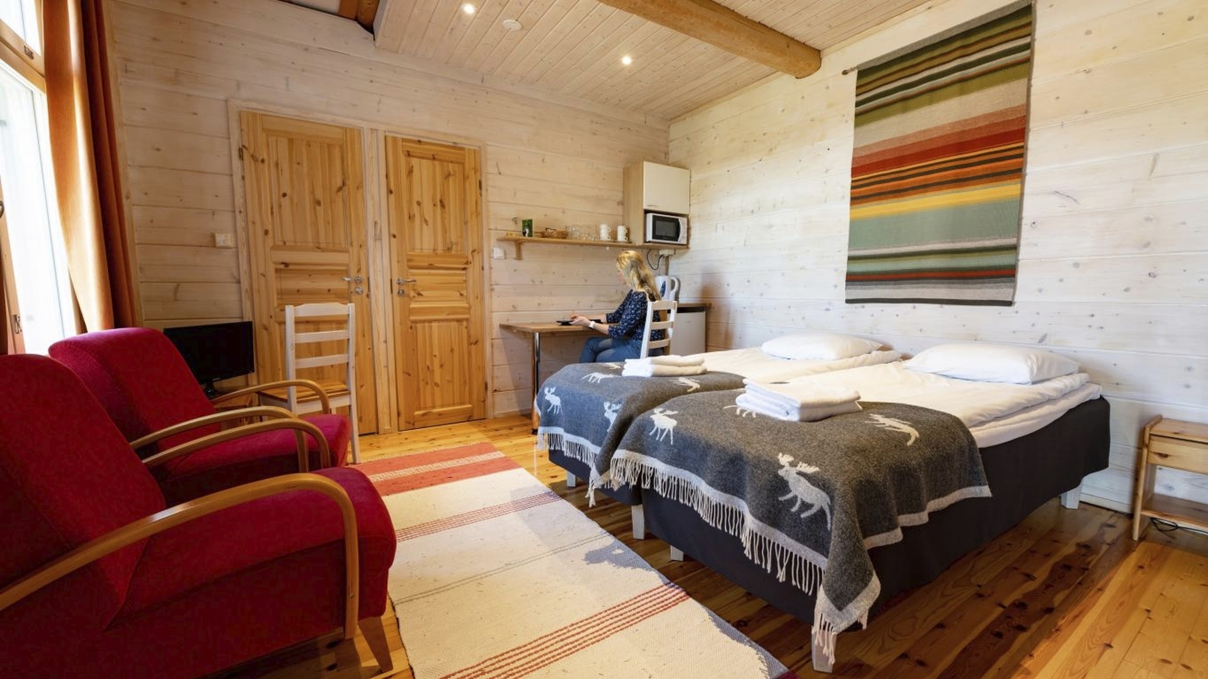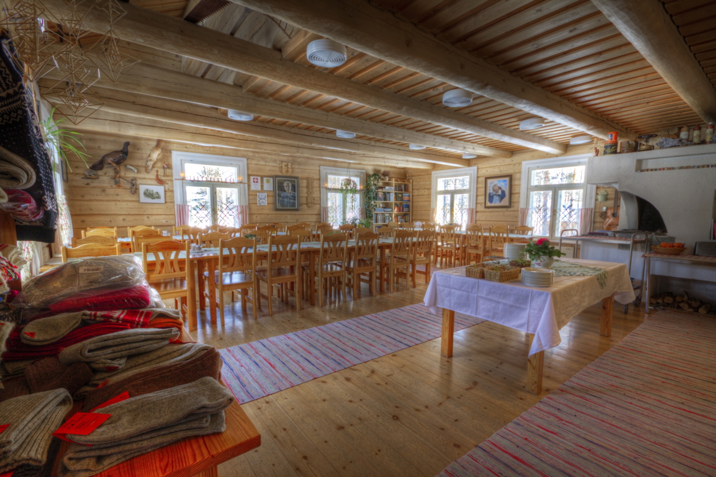 Saija Lodge: Die Saija Lodge ist ein sehr gemütliches und familiär geführtes Hotel mit eigener Husky Farm, in der mehr als 100 Huskys leben. Die Lodge ist vollständig aus Holz erbaut und fügt sich harmonisch in die umgebende Natur ein. Sie verfügt über ein Hauptgebäude mit Rezeption und dem gemütlichen Speise- und Aufenthaltssaal, indem Frühstück und Abendessen serviert werden.