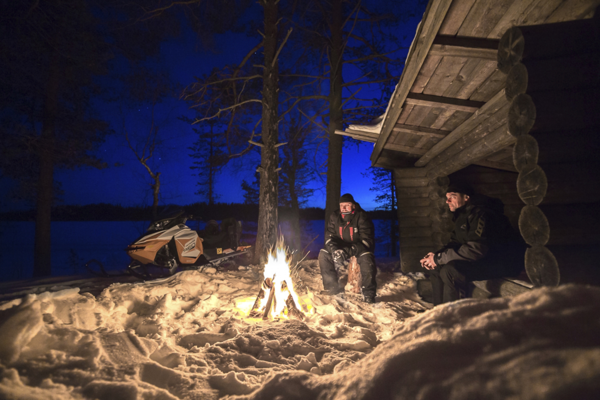 Schneemobiltour (30 km oder 60 km): Nachdem Sie eine Einführung in den Umgang mit Motorschlitten erhalten haben, erkunden Sie in rasanter Fahrt mit den wendigen Schneemobilen die unberührte Natur und traumhafte Winterwelt rund um die Saija Lodge. Dabei können Sie zwischen einer kürzeren Tour von 30 km Länge mit einer Kaffeepause und einer längeren Tour von 60 km Länge mit Mittagessen am Lagerfeuer in der Wildnis wählen.