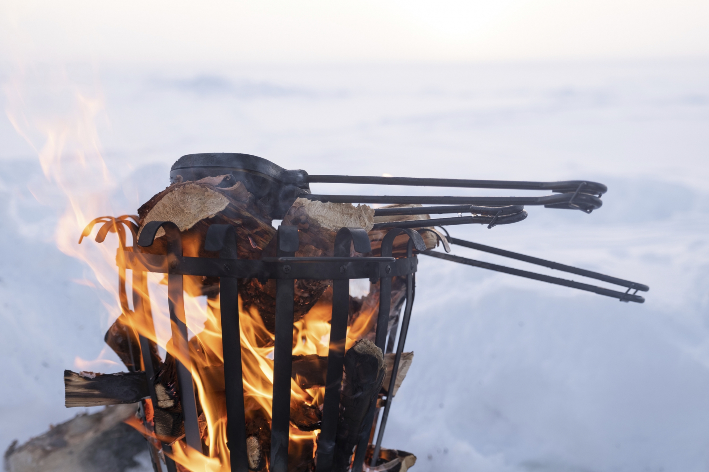 Denn während Sie angeln, brennt in der Nähe ein wärmendes Feuer auf dem Sie auch ihr Mittagessen gemeinsam mit Ihrem Guide zubereiten. Auf ausgebreiteten Rentierfellen können Sie es sich gemütlich machen und Ihre Sandwichs über den Flammen toasten. Lassen Sie dabei Ihren Blick bei einem warmen Getränk über die lautlose Weite schweifen.